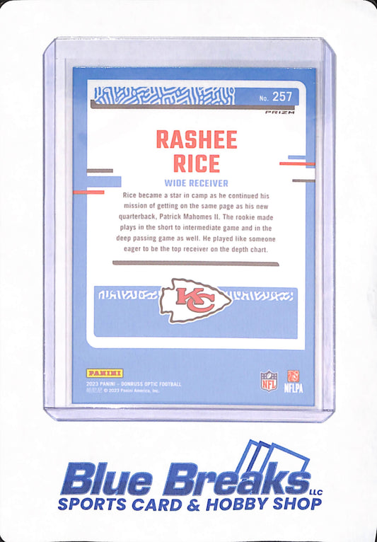 2023 Panini - Donruss Optic - Rashee Rice - Kansas City Chiefs - Football - # 257 - Rated Rookie - Blue Hyper Prizm
