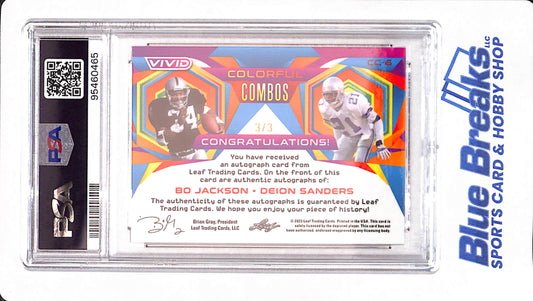 2023 Leaf Vivid - Bo Jackson - Deion Sanders - Football - Colorful Combos - Orange - Autographed - 3/3 - # CC-6 - PSA 9