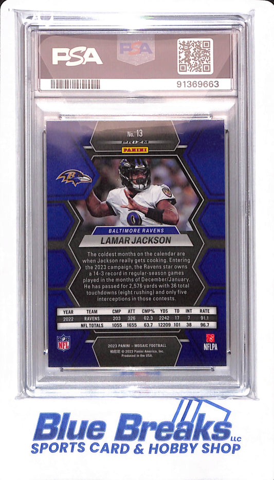 2023 Mosaic - Lamar Jackson - # 13 - PSA 10 - Football - Honeycomb - Baltimore Ravens