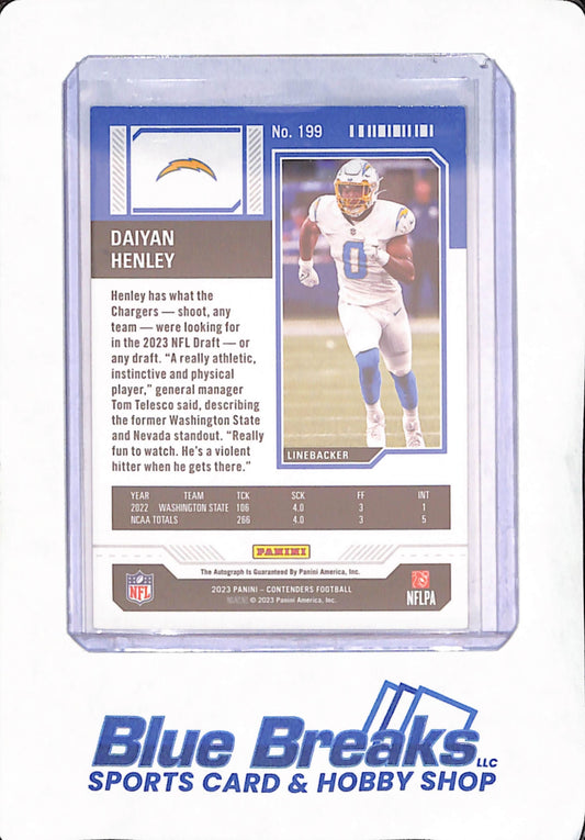 2023 Panini Contenders - Daiyan Henley - Autograph - Los Angeles Chargers - Football - RC - 41/50 - #199