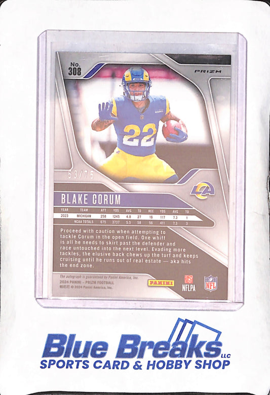 2024 Panini Prizm - Bake Corum - Green Scope Autograph RC - 53/75 - Los Angeles Rams - Football - #308