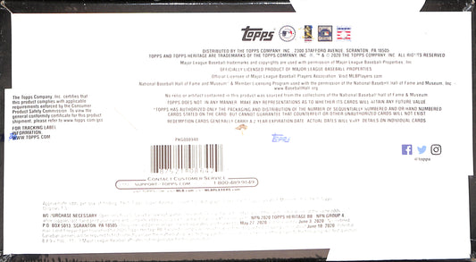 2020 Topps Heritage Baseball Hobby Box - Sealed Wax