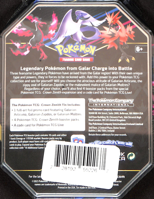 Crown Zenith Tin [Galarian Moltres] - Crown Zenith (CRZ) - Pokemon - Sealed Wax