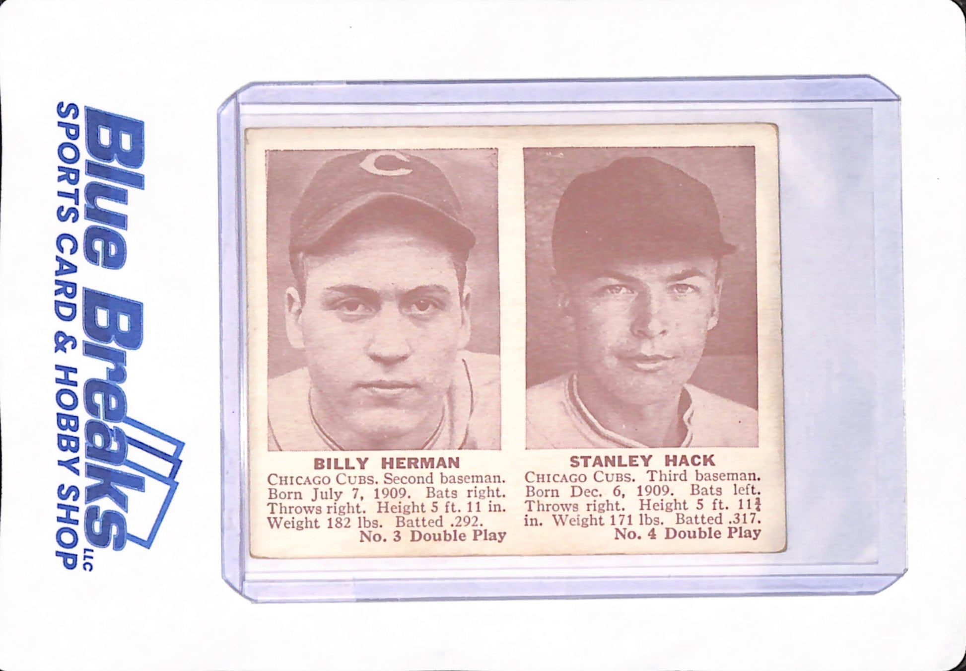 1941 Billy Herman - Stanley Hack - Double Play - Baseball - Chicago Cubs