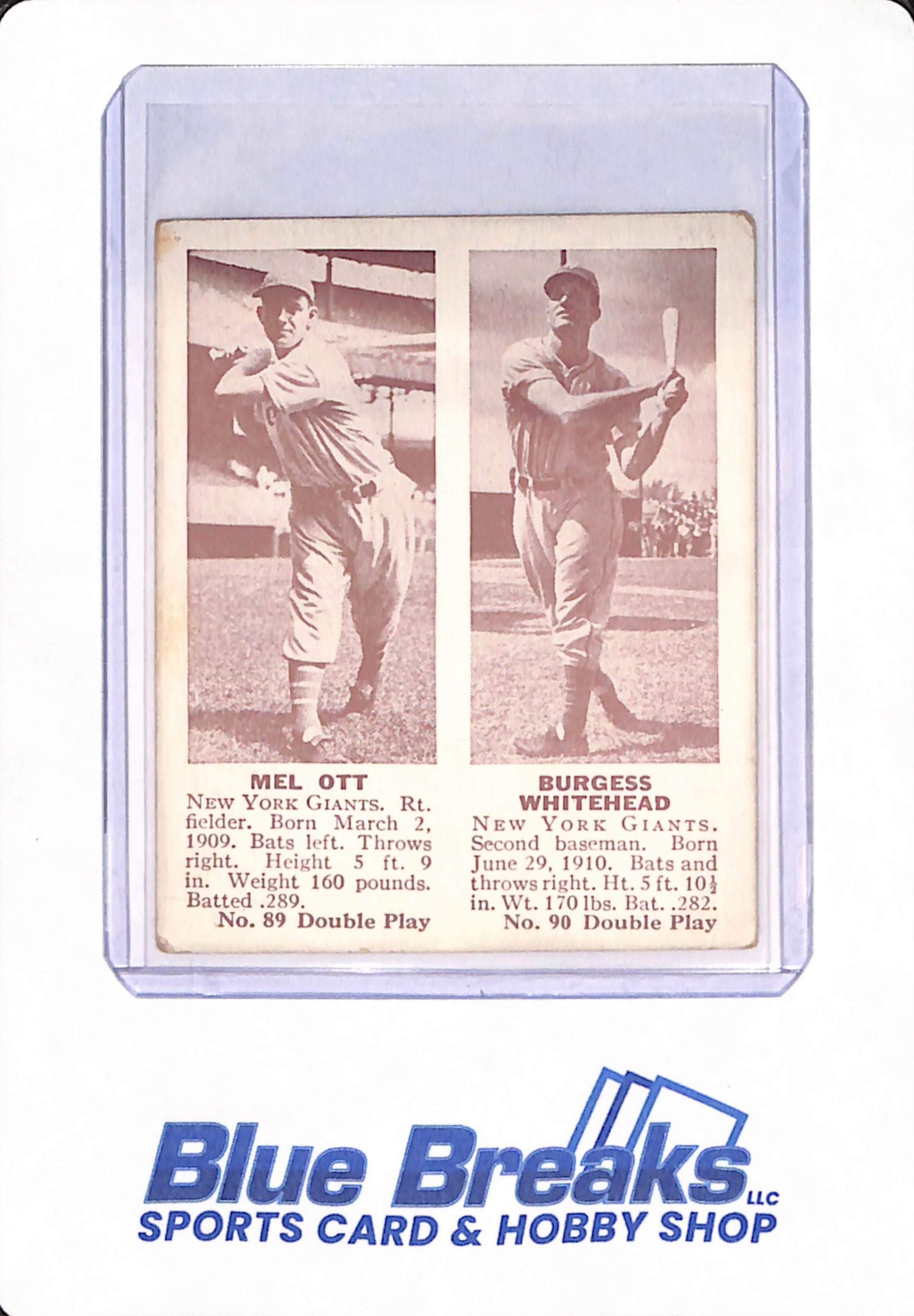1941 - Mel Ott - Burgess Whitehead - Double Play - Baseball - New York Giants