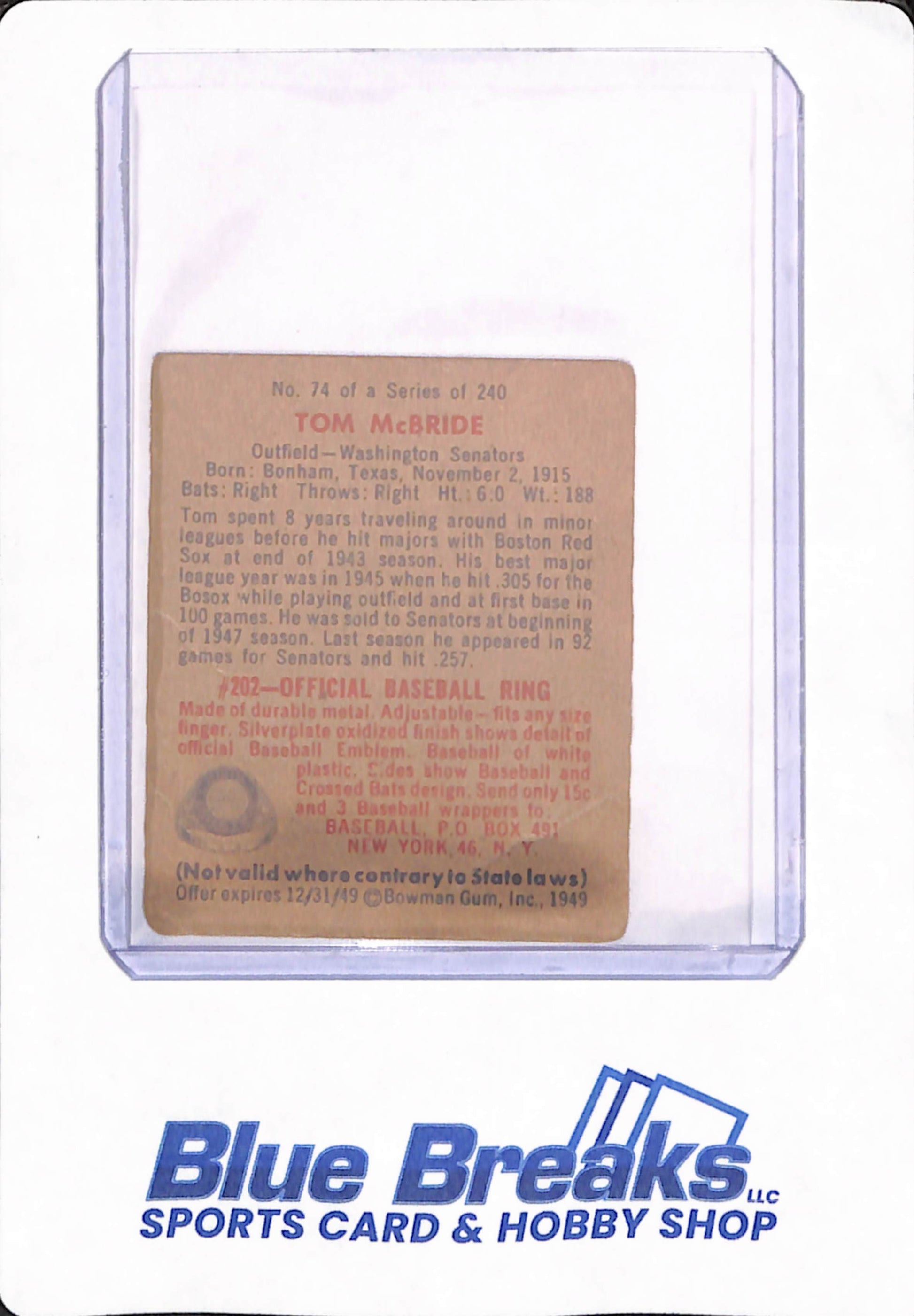 1949 Bowman - Tom McBride - # 74 - Baseball - Washington Senators