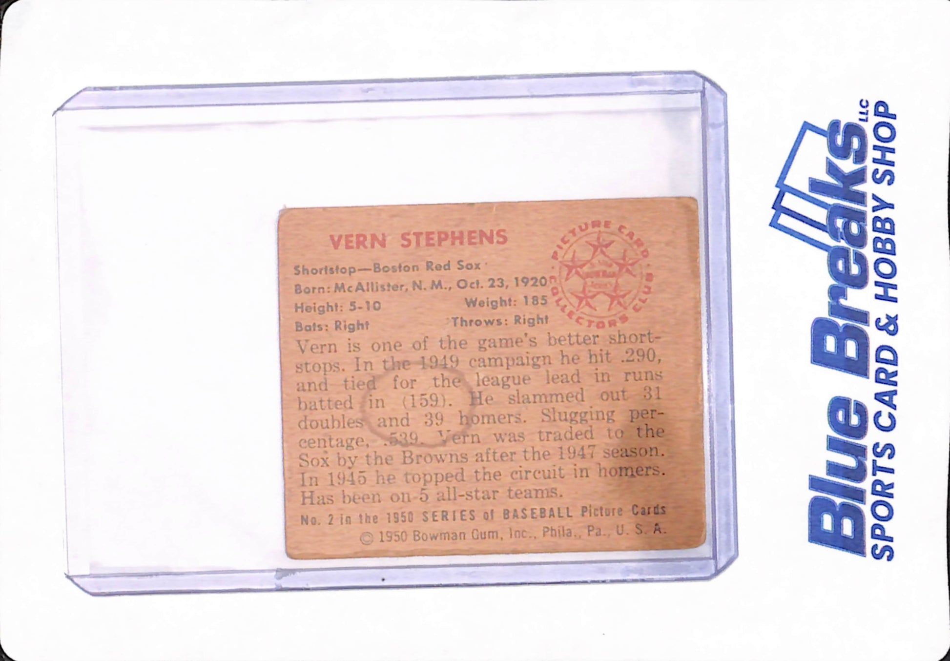 1950 Bowman - Vern Stephens - Baseball - Boston Red Sox - # 2
