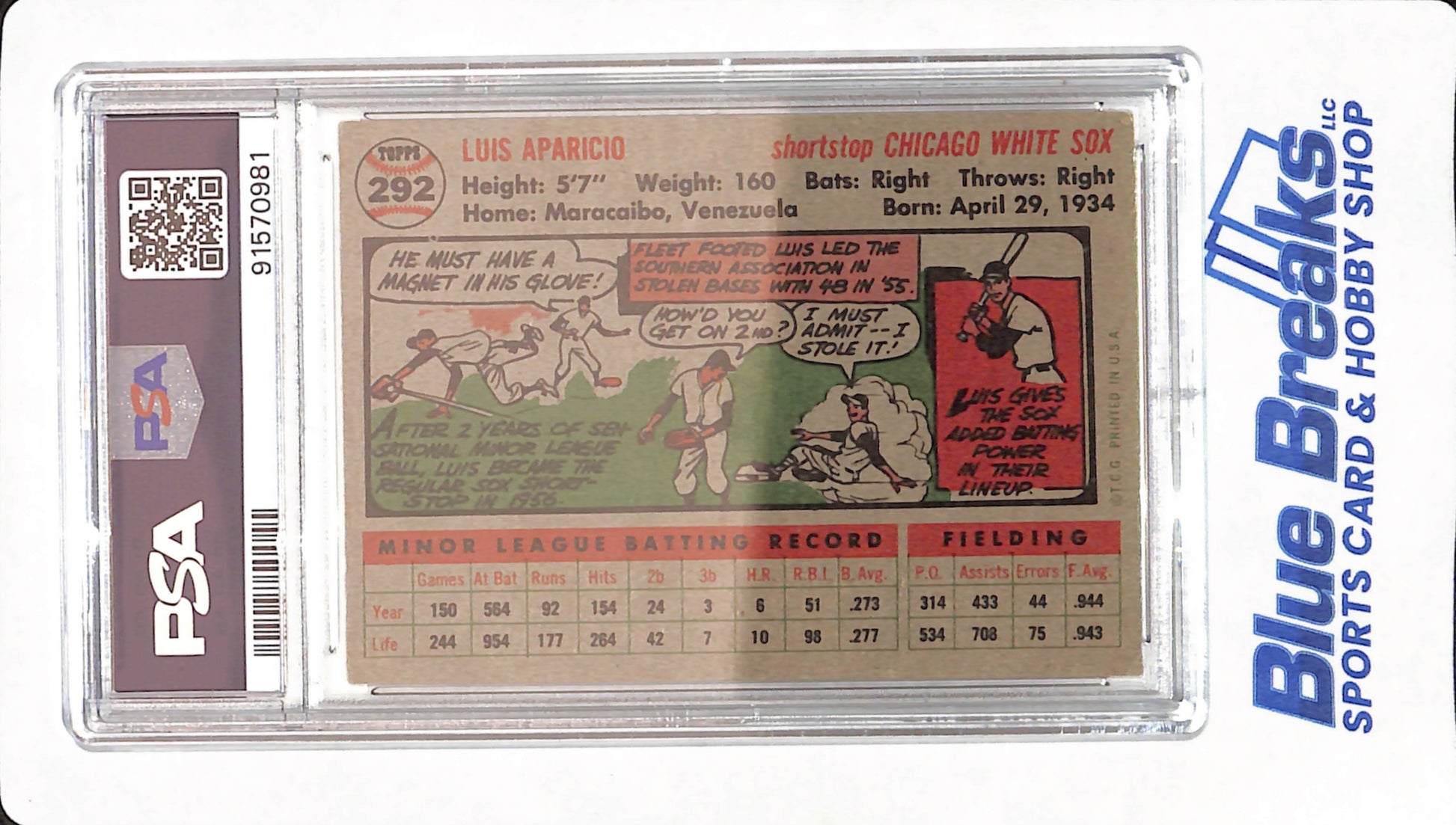 1956 Topps - Luis Aparicio - Chicago White Sox - Baseball - # 292 - PSA 5