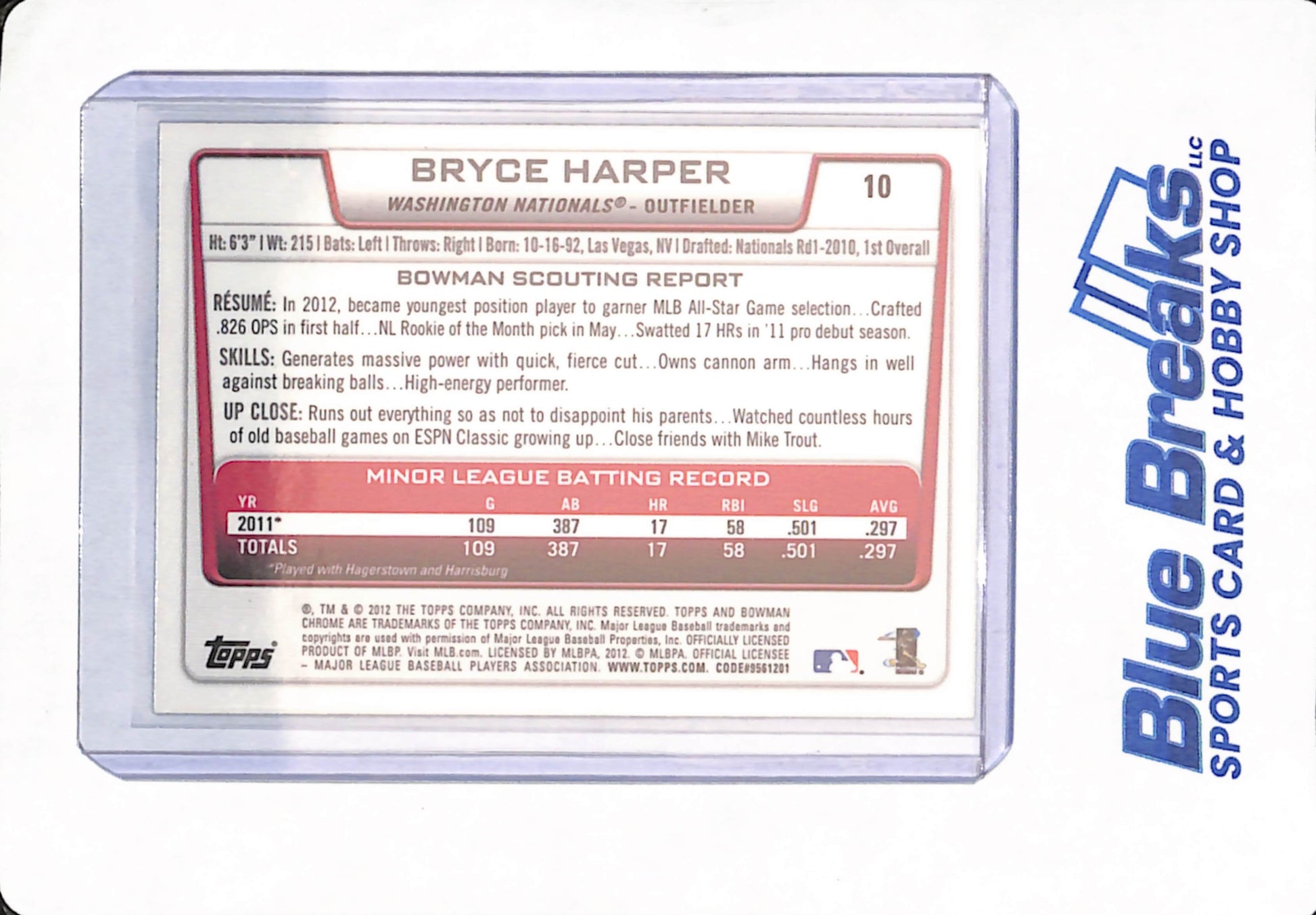 2012 Bowman Chrome - Bryce Harper - Baseball - Washington Nationals - Rookie - # 10