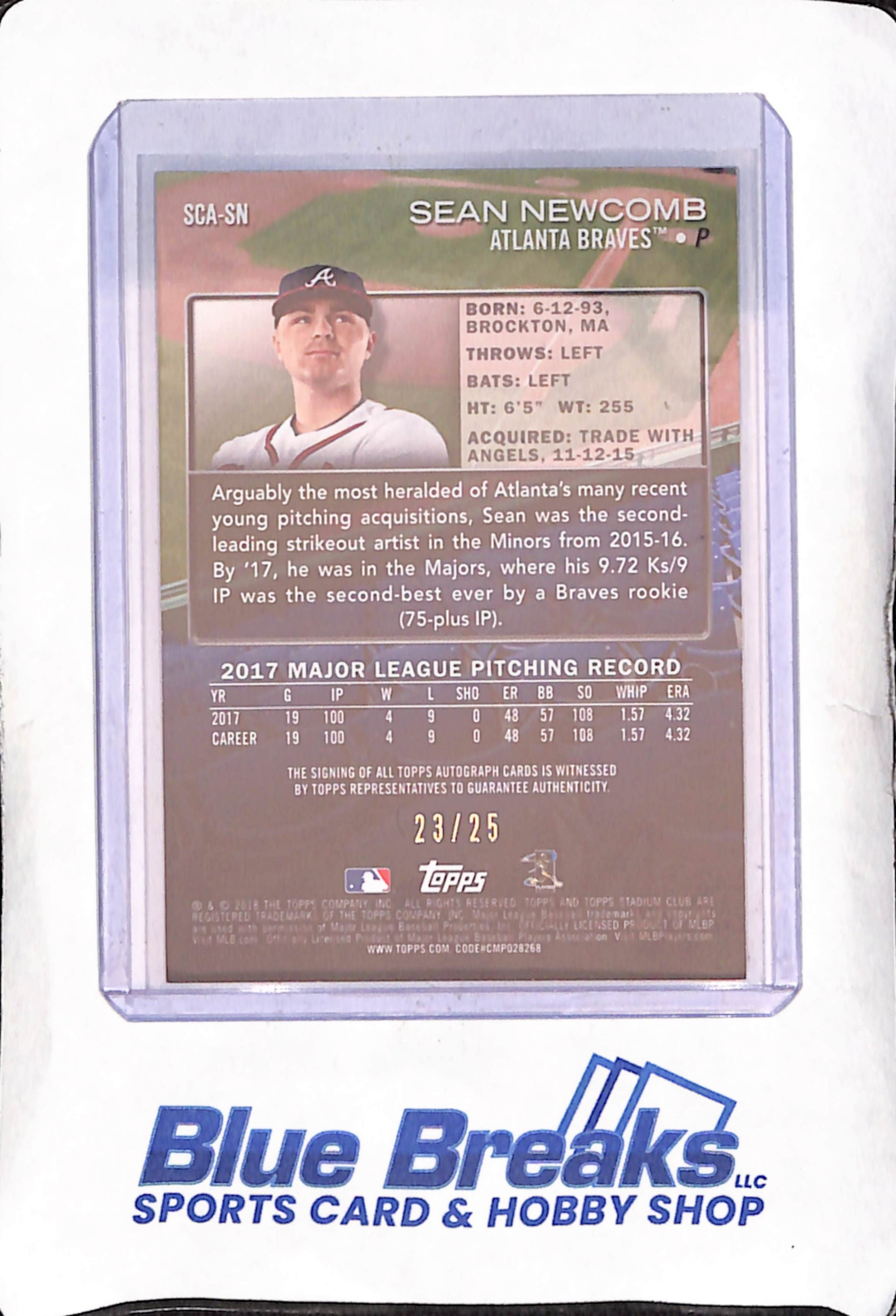 2018 Topps Stadium Club - Sean Newcomb - Autograph - 23/50 - Atlanta Braves - Baseball - #SCA-SN