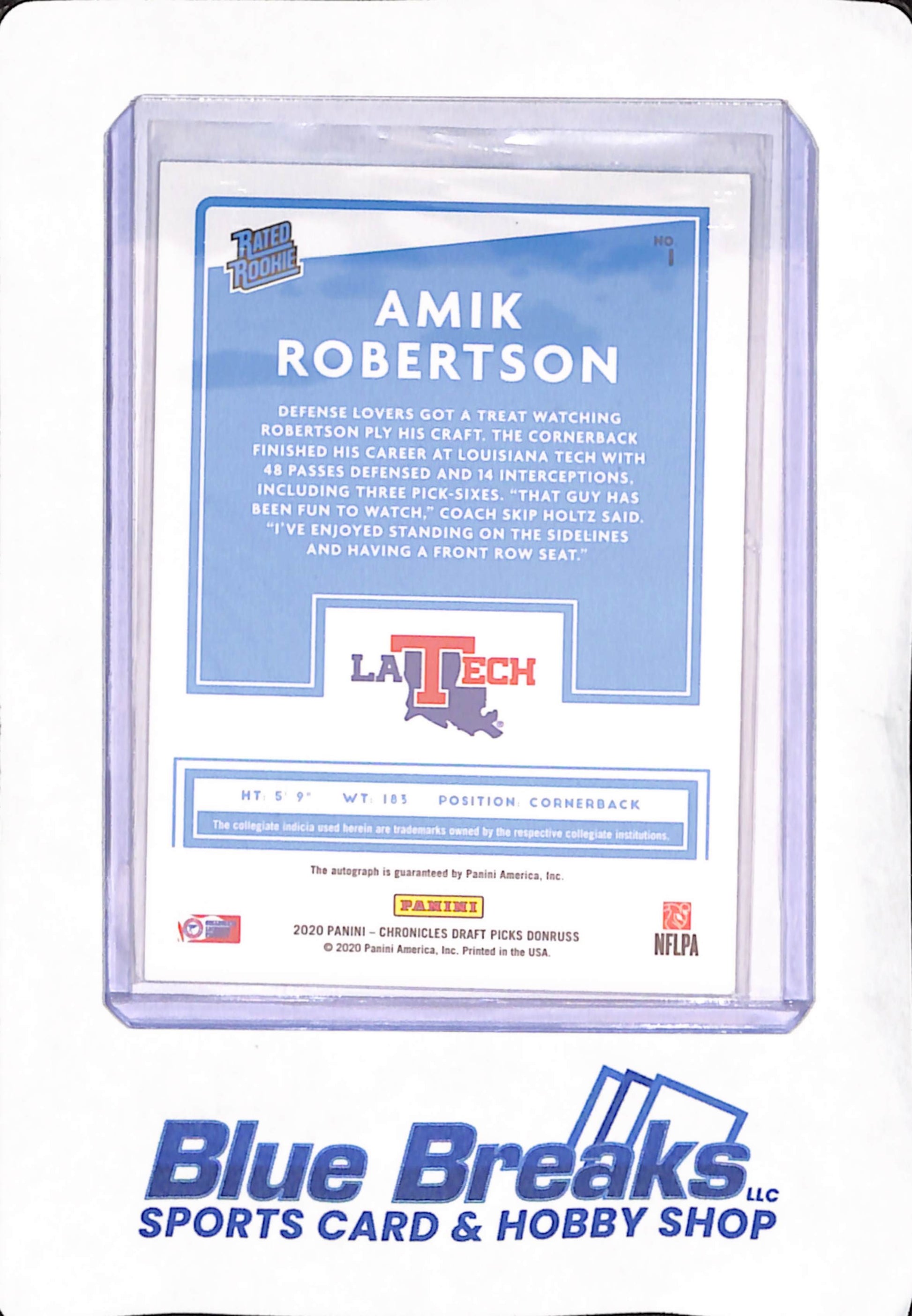 2020 Panini Donruss Chronicles Draft Picks - Amik Robertson - Los Angeles Tech - Football - Autograph - Rated Rookie - #1
