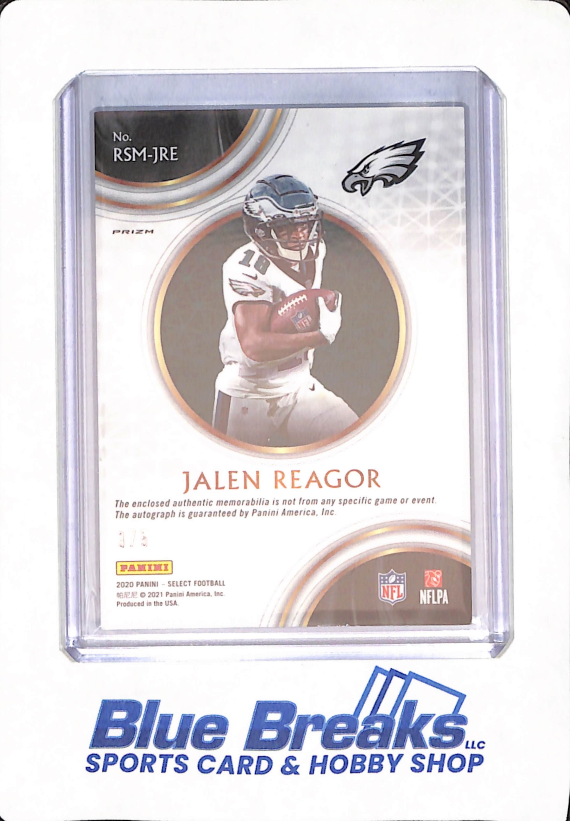 2020 Panini Select - Jalen Reagor - Football - Philadelphia Eagles - Autograph - Relic - Prizm - RC - 3/5 - #RSM-JRE
