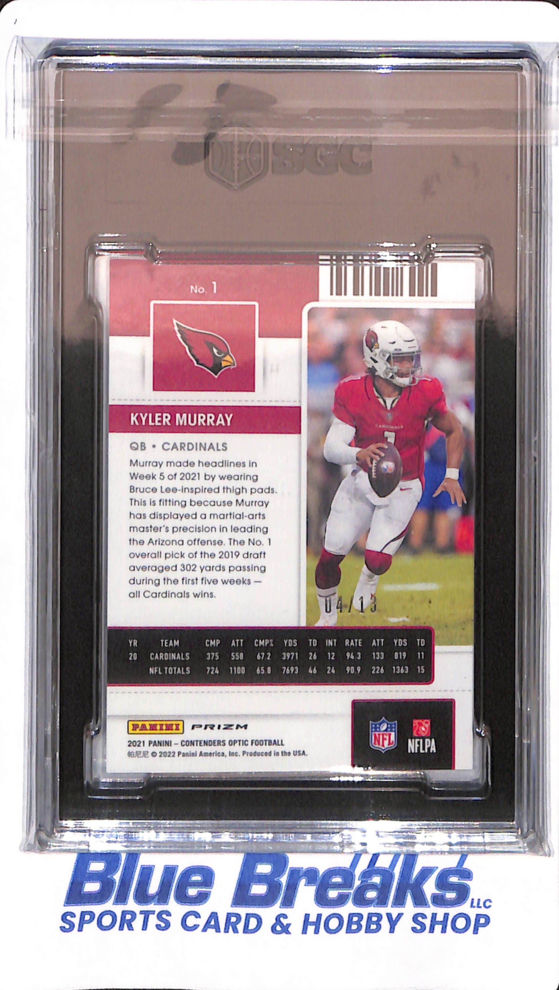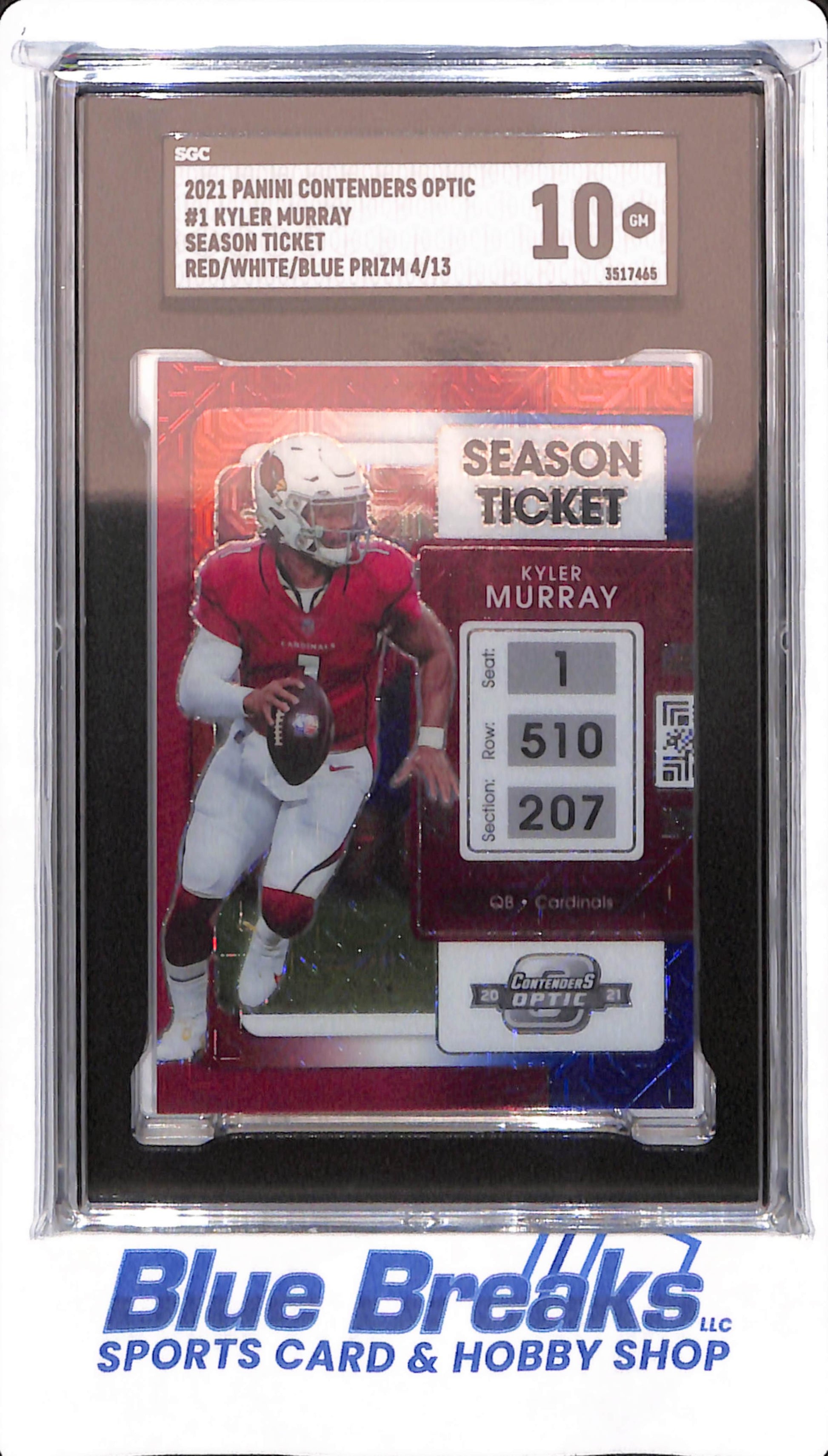 2021 Panini Contenders Optic - Kyler Murray - # 1 - Arizona Cardinals - Football - SGC 10 - Red / White / Blue - Season Ticker - 4/13