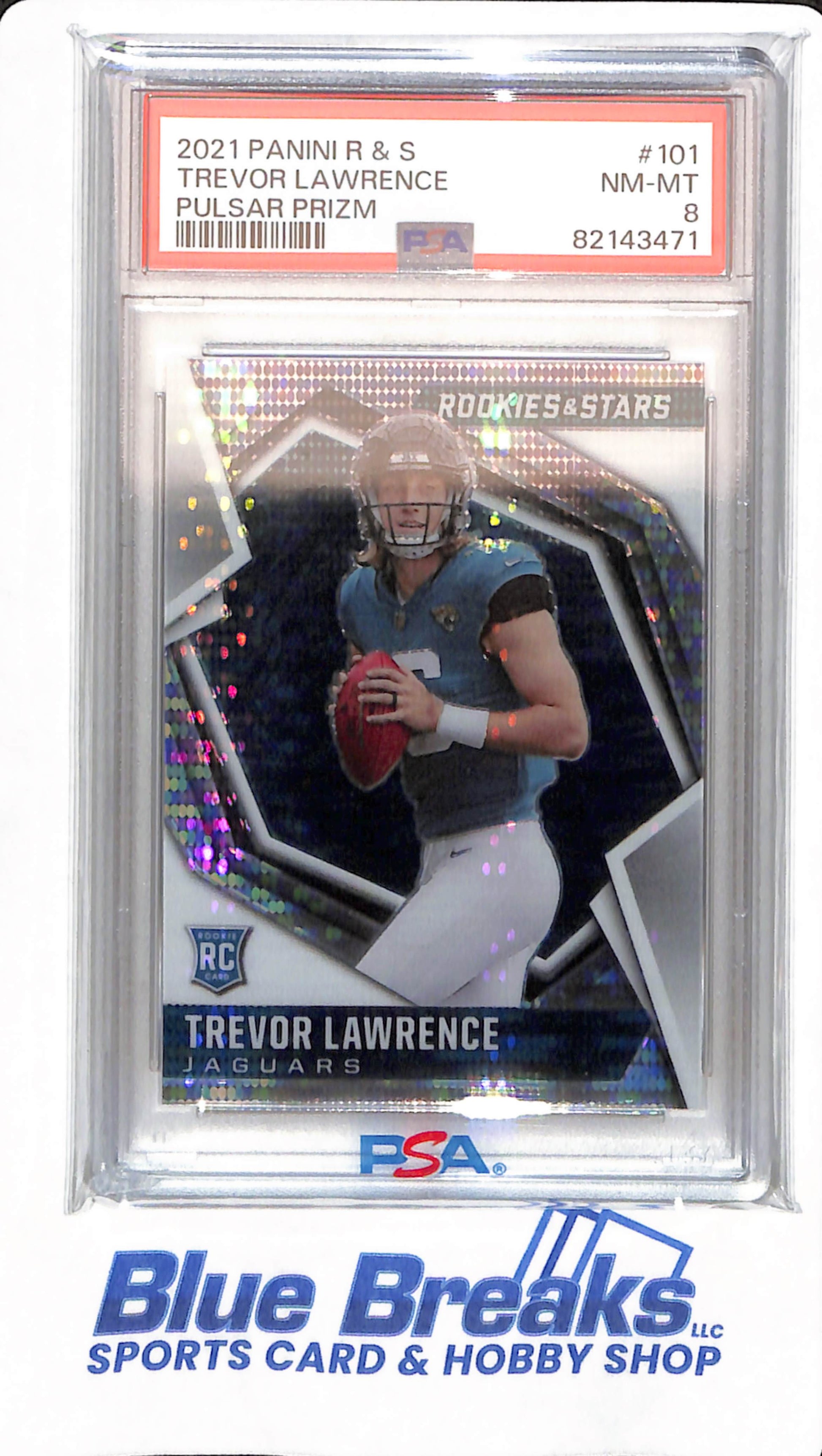 2021 Panini Rookies & Stars - Trevor Lawrence - # 101 - Football - Jacksonville Jaguars - PSA 8 - Pulsar Prizm