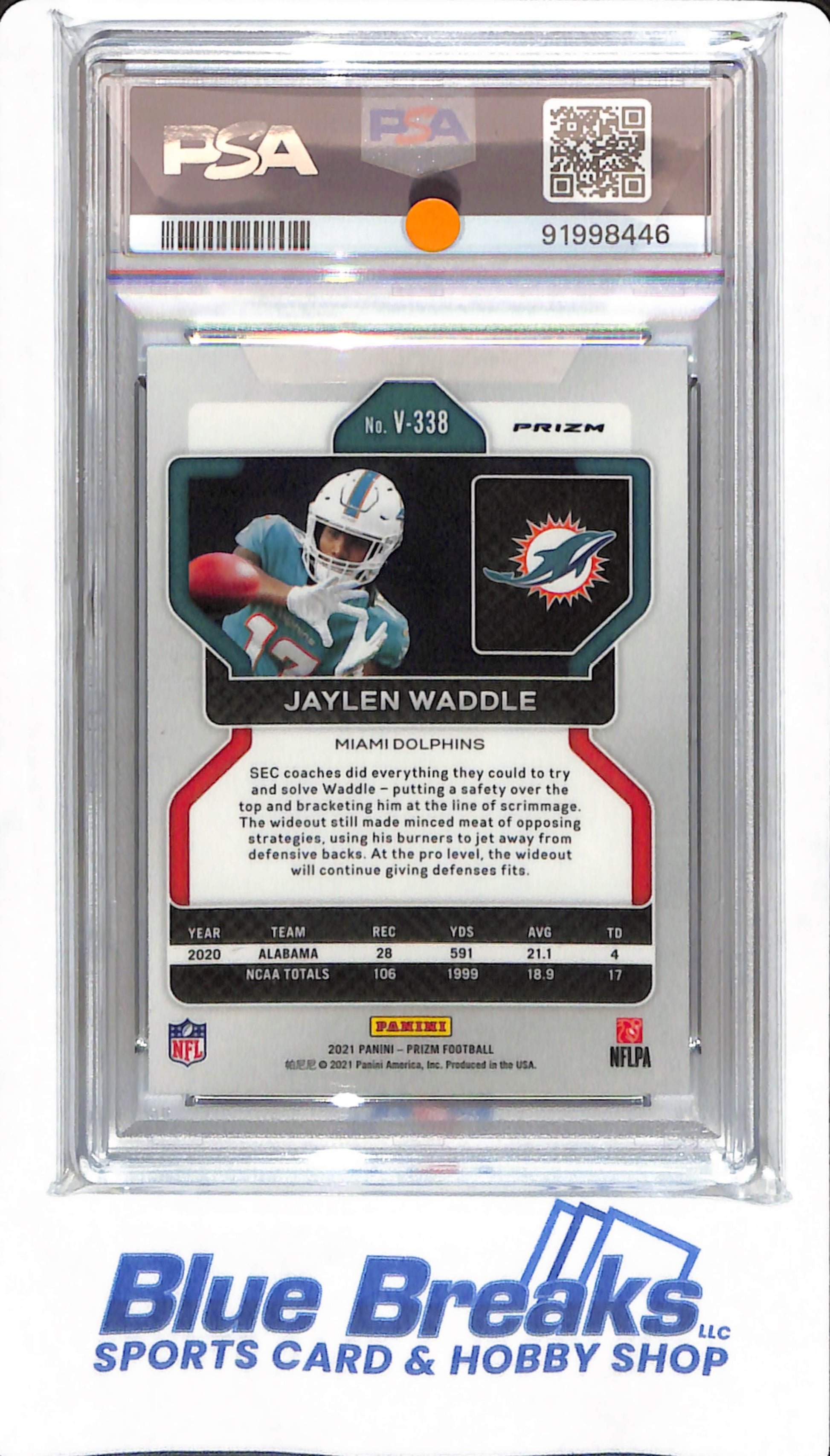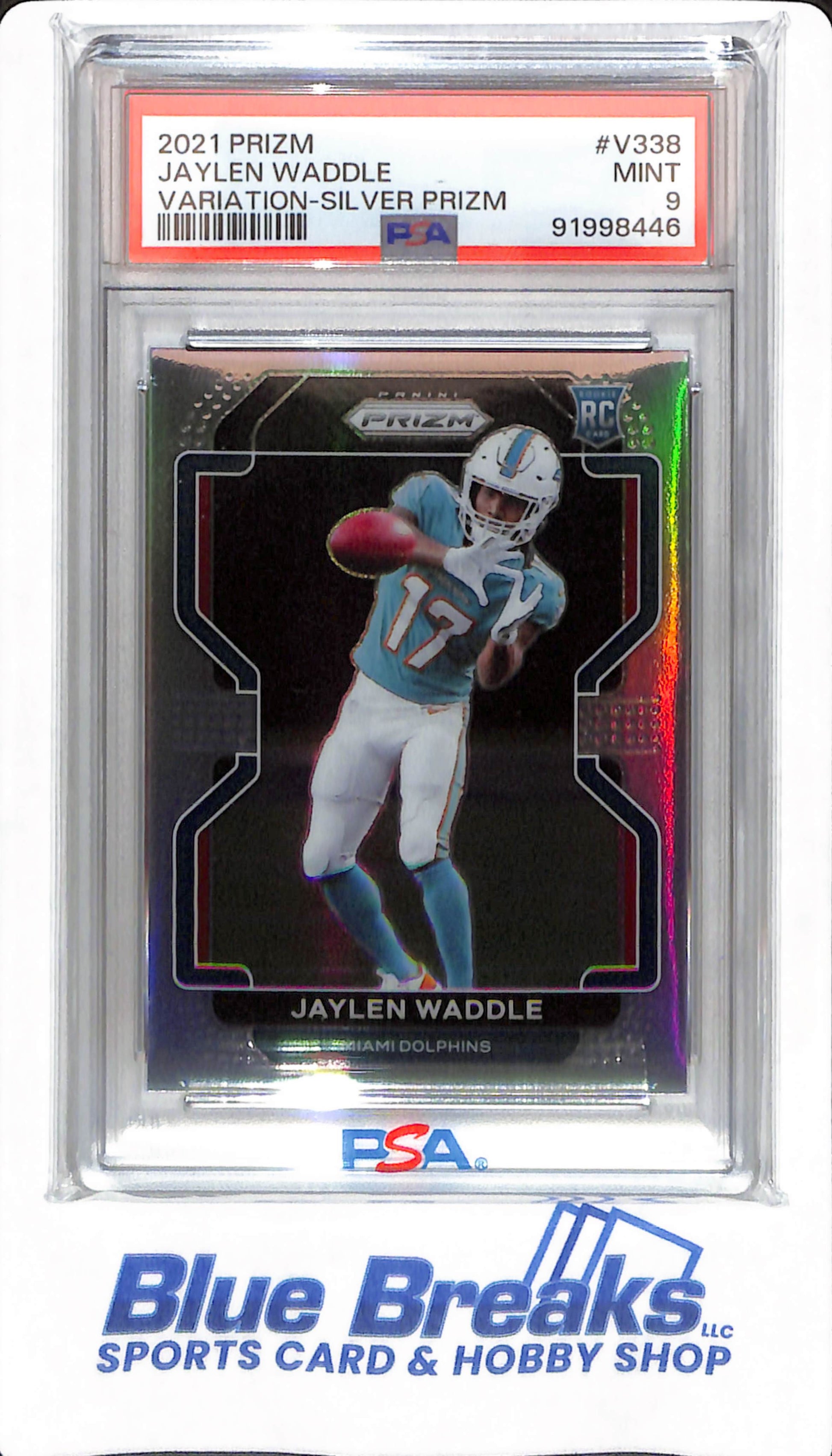 2021 Prizm - Jaylen Waddle - # V338 - PSA 9 - Miami Dolphins - Football - Variation Silver