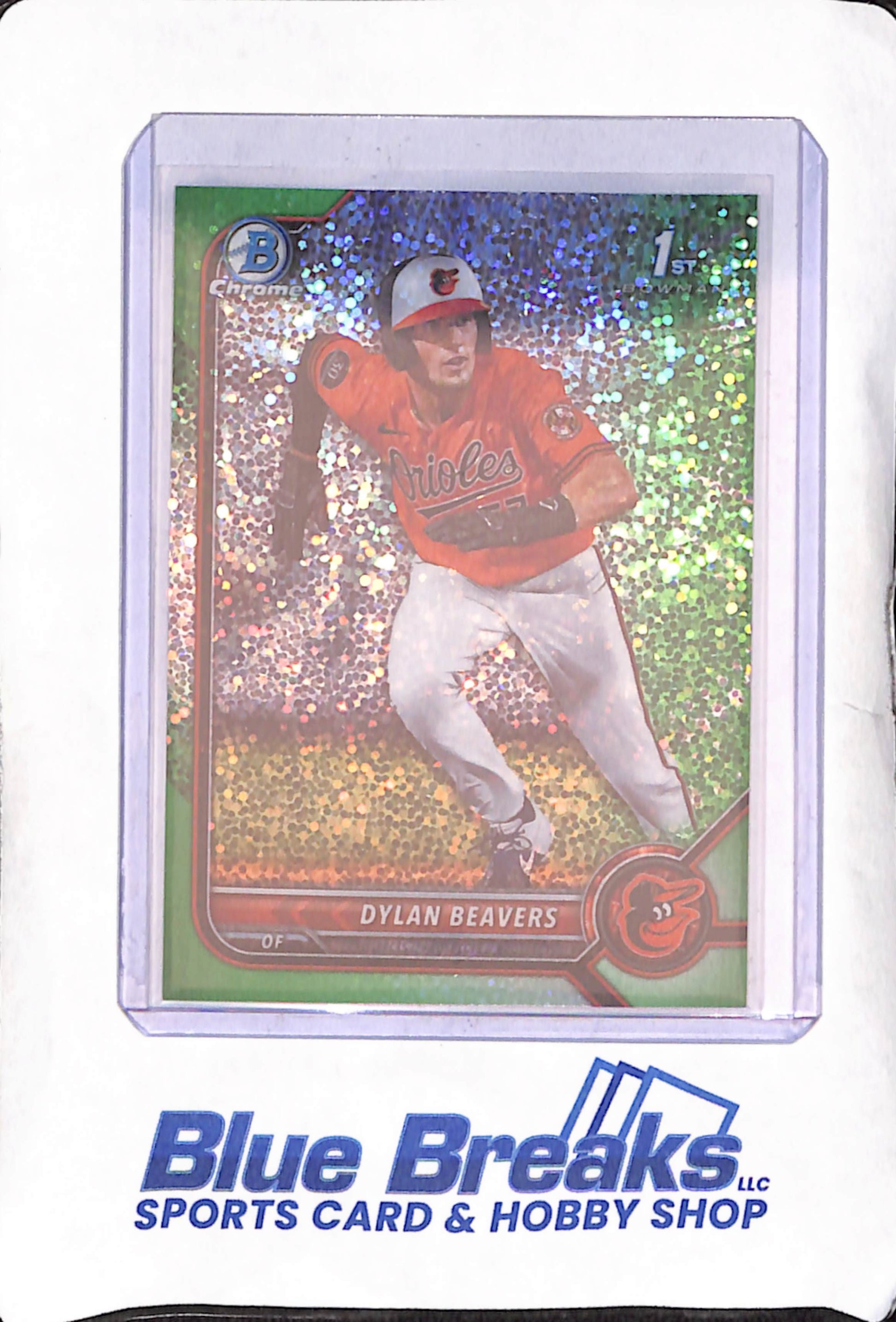 2022 Bowman Draft Chrome - Dylan Beavers - Green Sparkle Refractor Bowman 1st - 56/99 - Baltimore Orioles - Baseball - #BDC-160