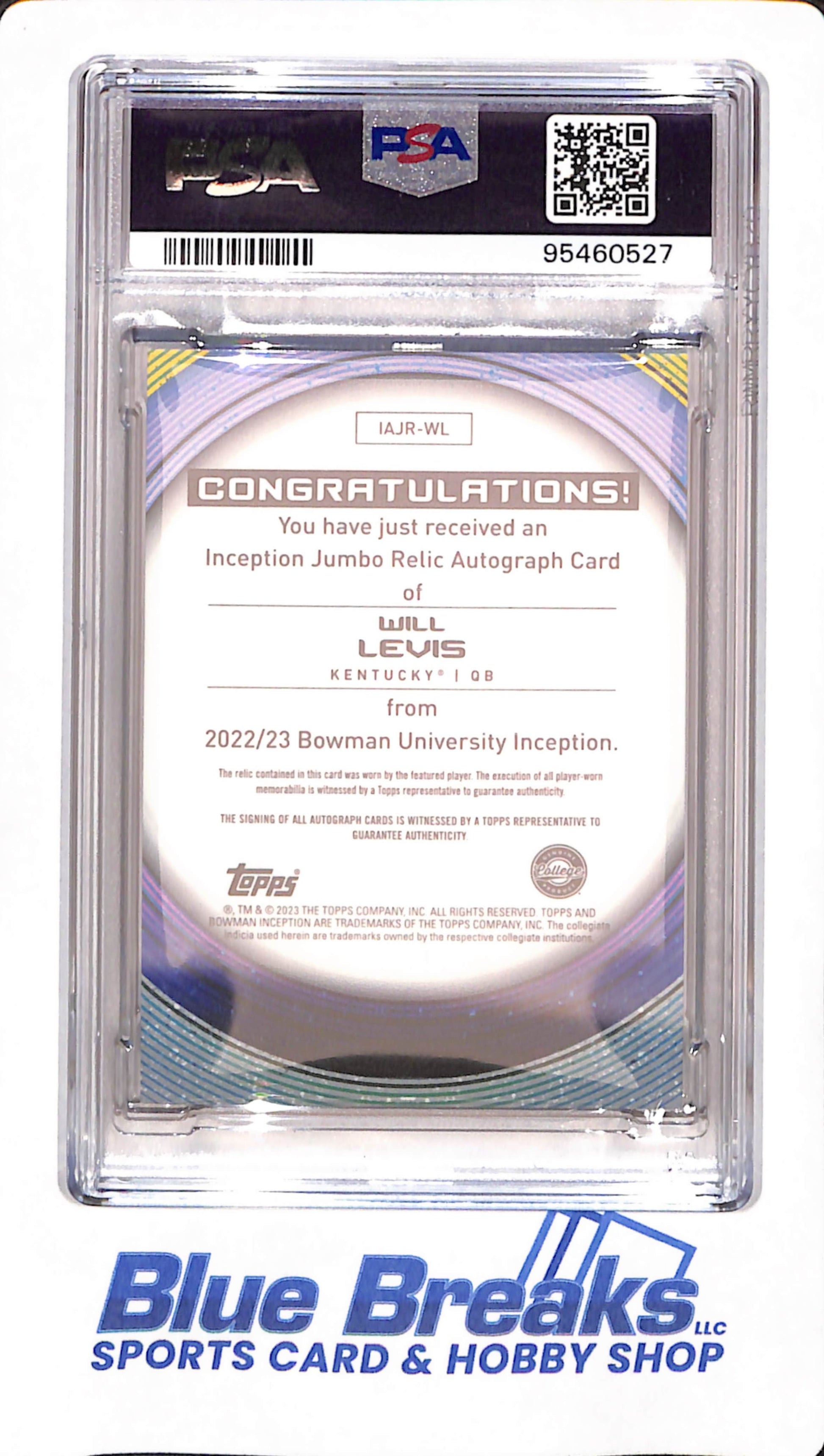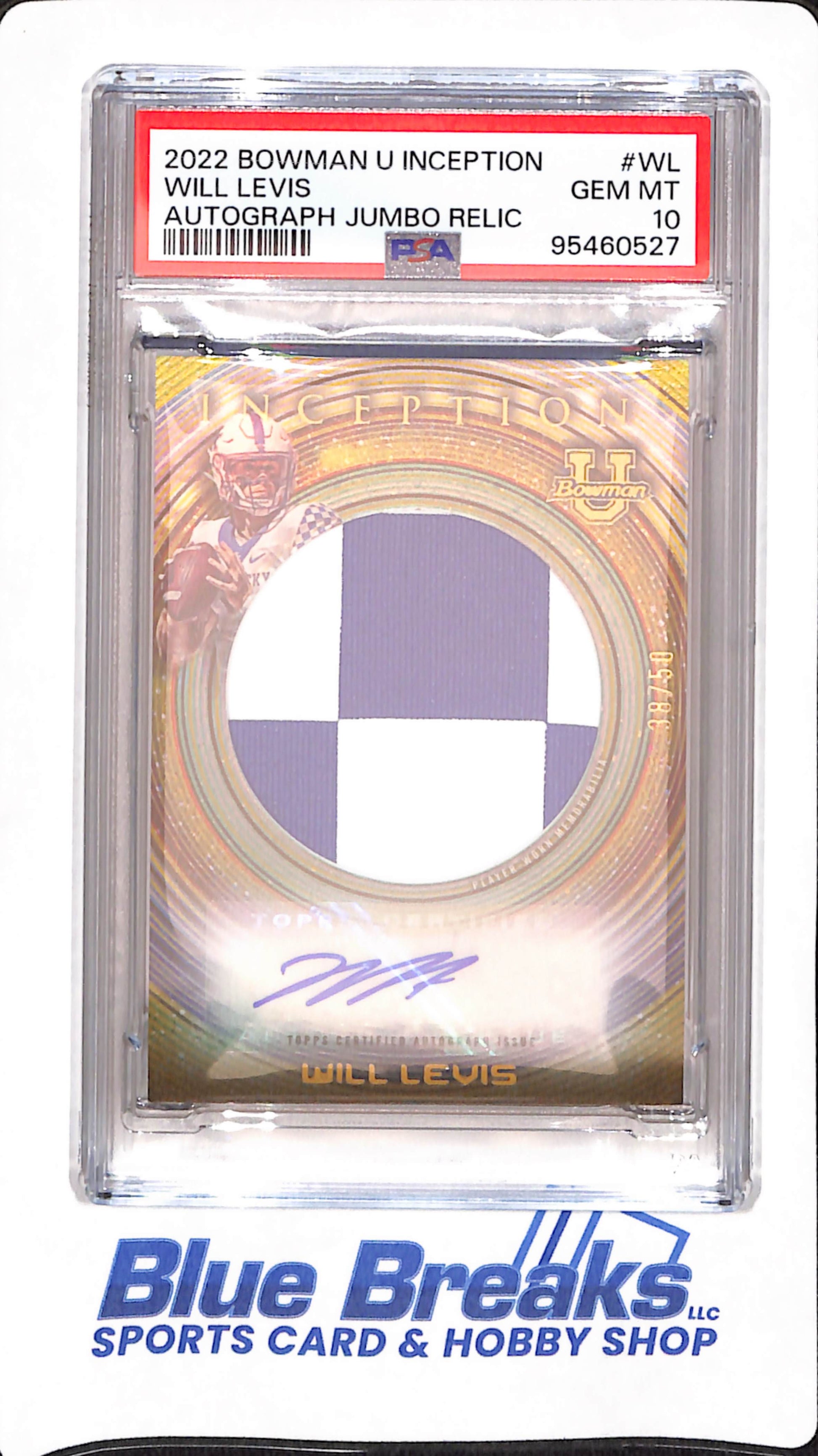 2022 Bowman U Inception - Will Levis - Jumbo Relic - Football - Tennessee Titans -Autograph - 38/50 - PSA 10