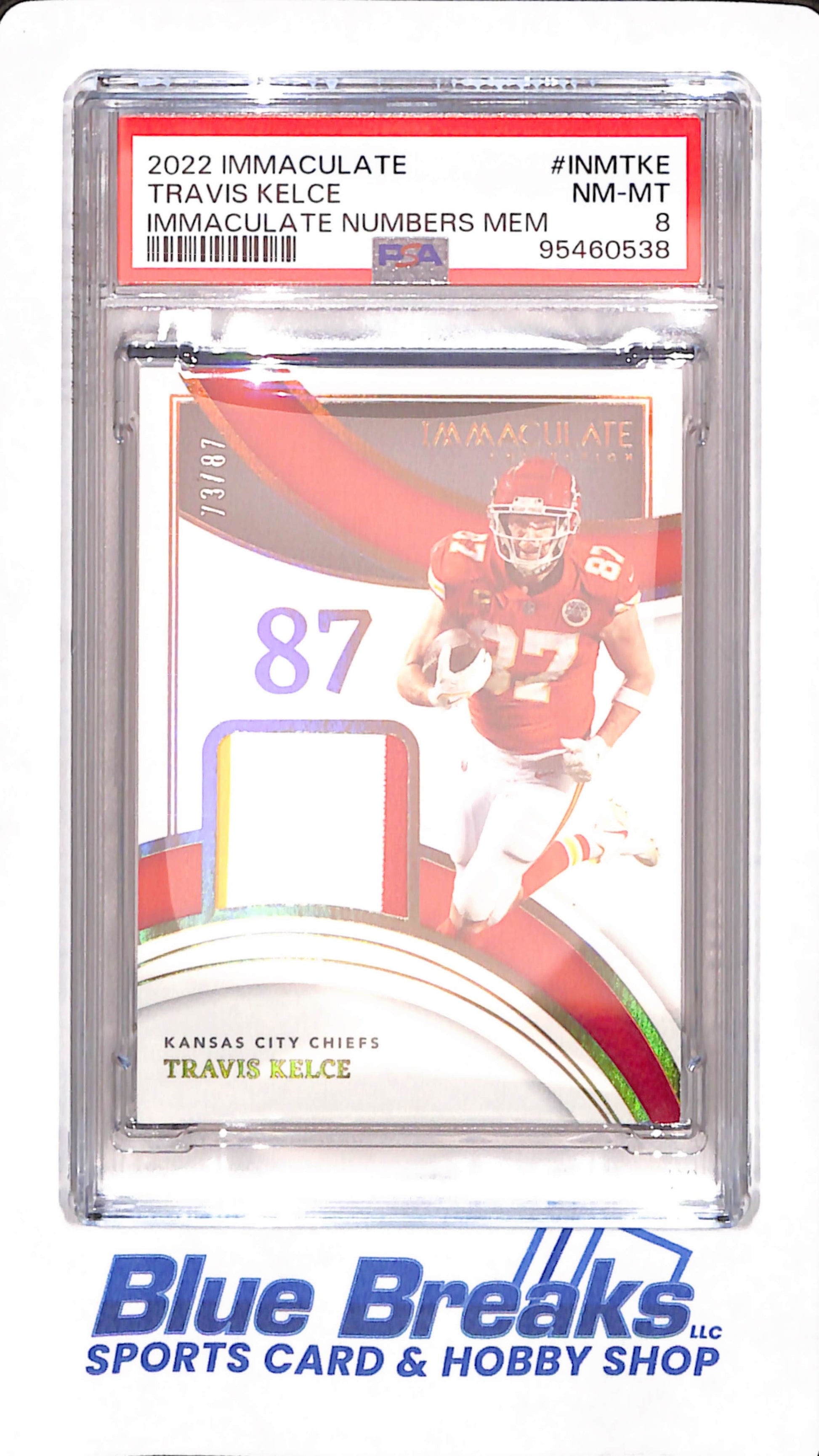 2022 Immaculate - Travis Kelce - Football - Kansas City Chiefs - # INMTKE - 73/87 - Relic - Numbers Mem - PSA 8