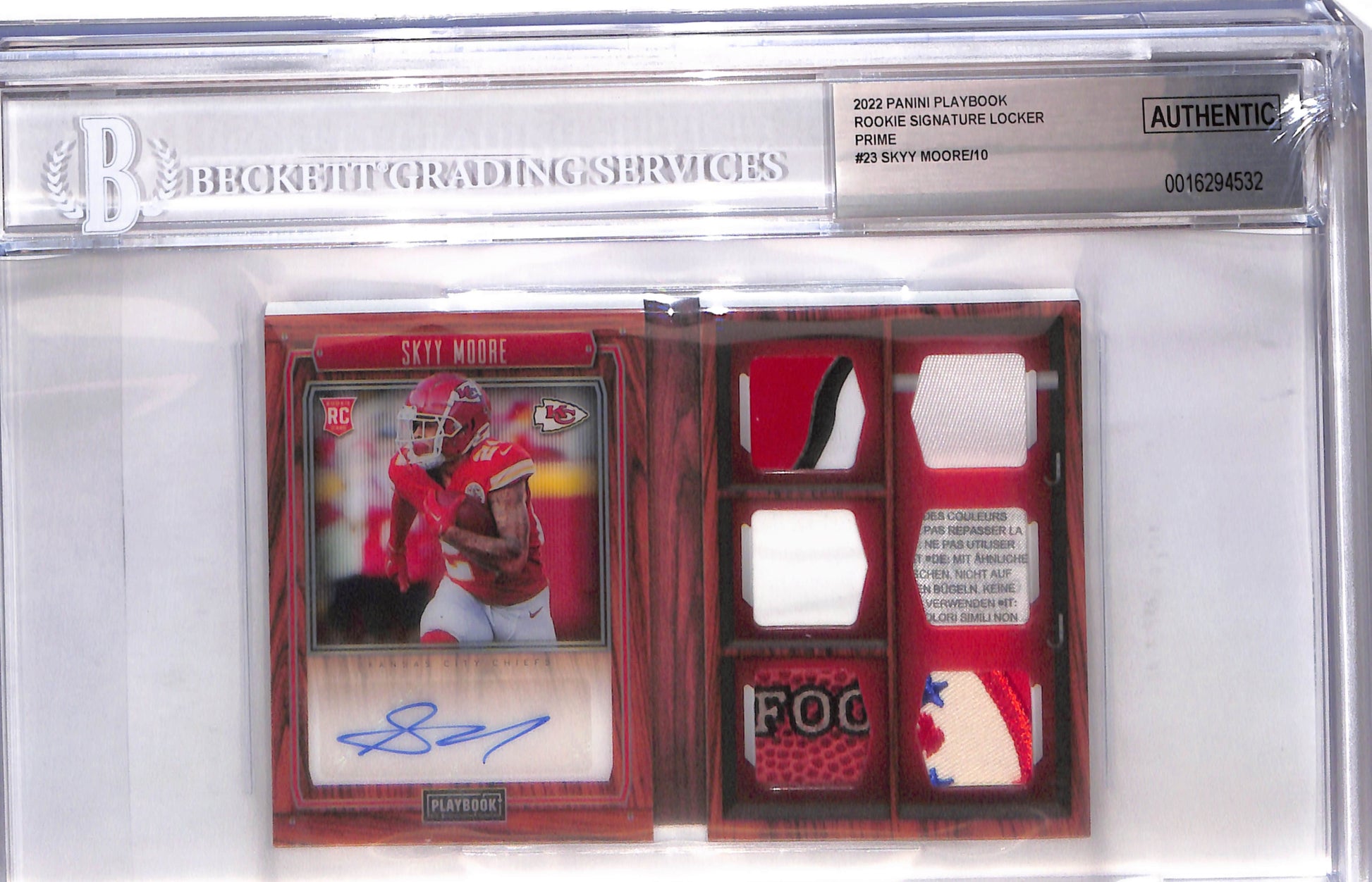 2022 Panini Playbook - Sky Moore - # 23 - Kansas City Chiefs - Football - Booklet - Relic - Rookie Signature Locker - Beckett Authentic - 05/10