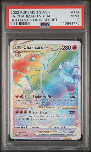 2022 Pokemon SWSH Charizard VSTAR FA Brilliant Stars Secret #174 PSA 9