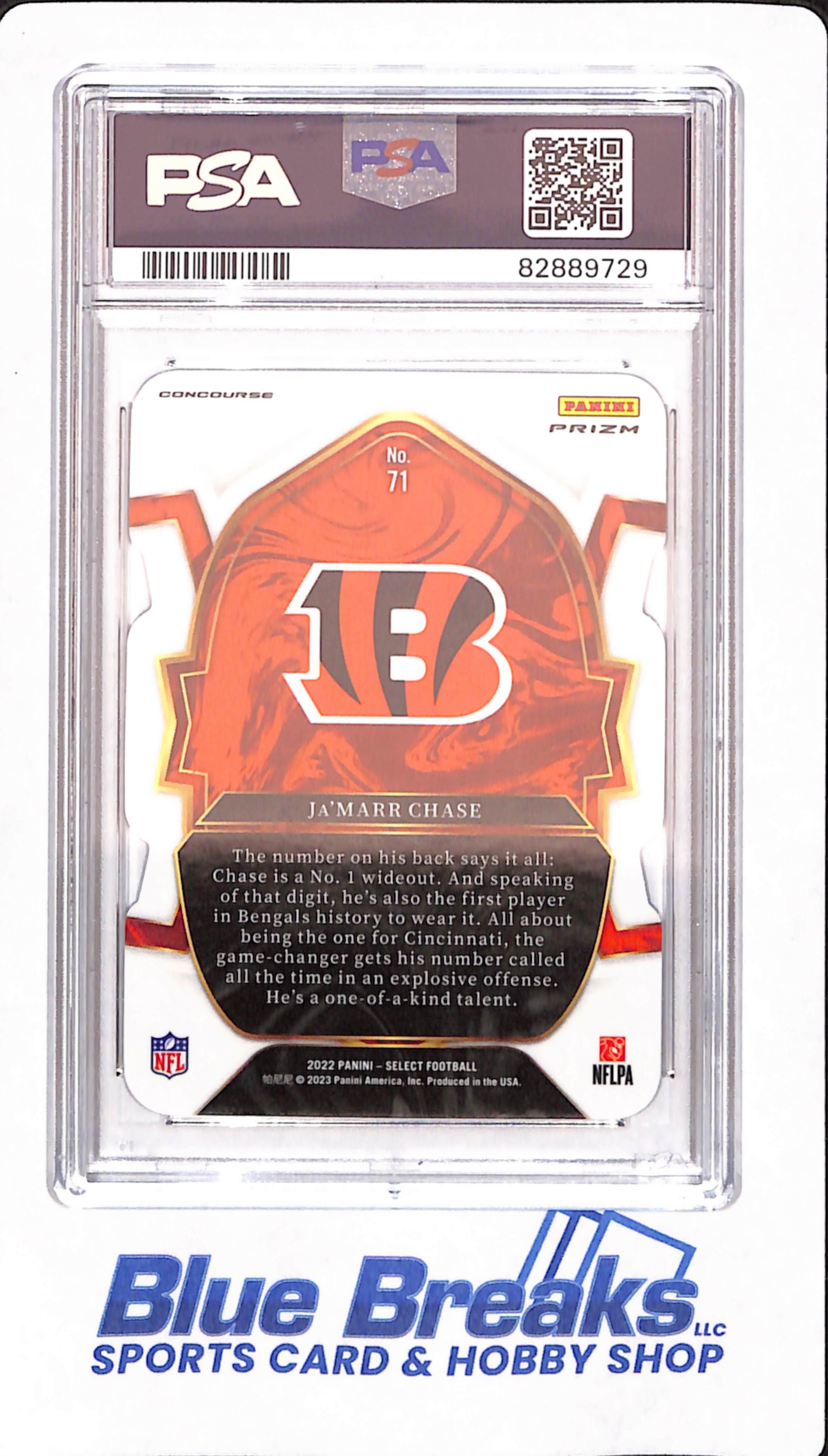 2022 Select - Ja'Marr Chase - Cincinnati Bengals - Football - # 71 - Die Cut Zebra Prizm - PSA 10