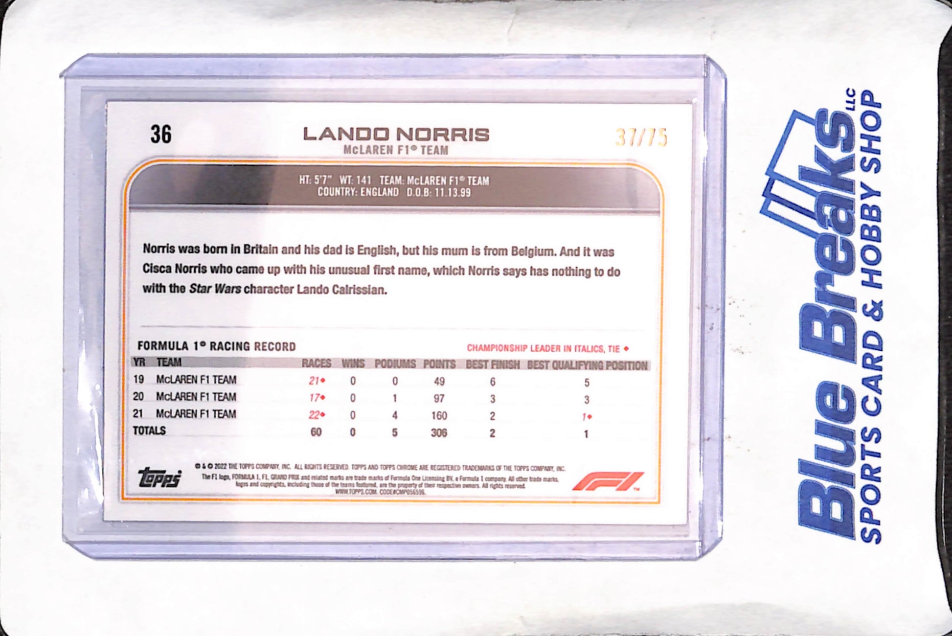 2022 Topps Chrome - Lando Norris - 37/75 - Pink - McLaren F1 Team - Racing - #36