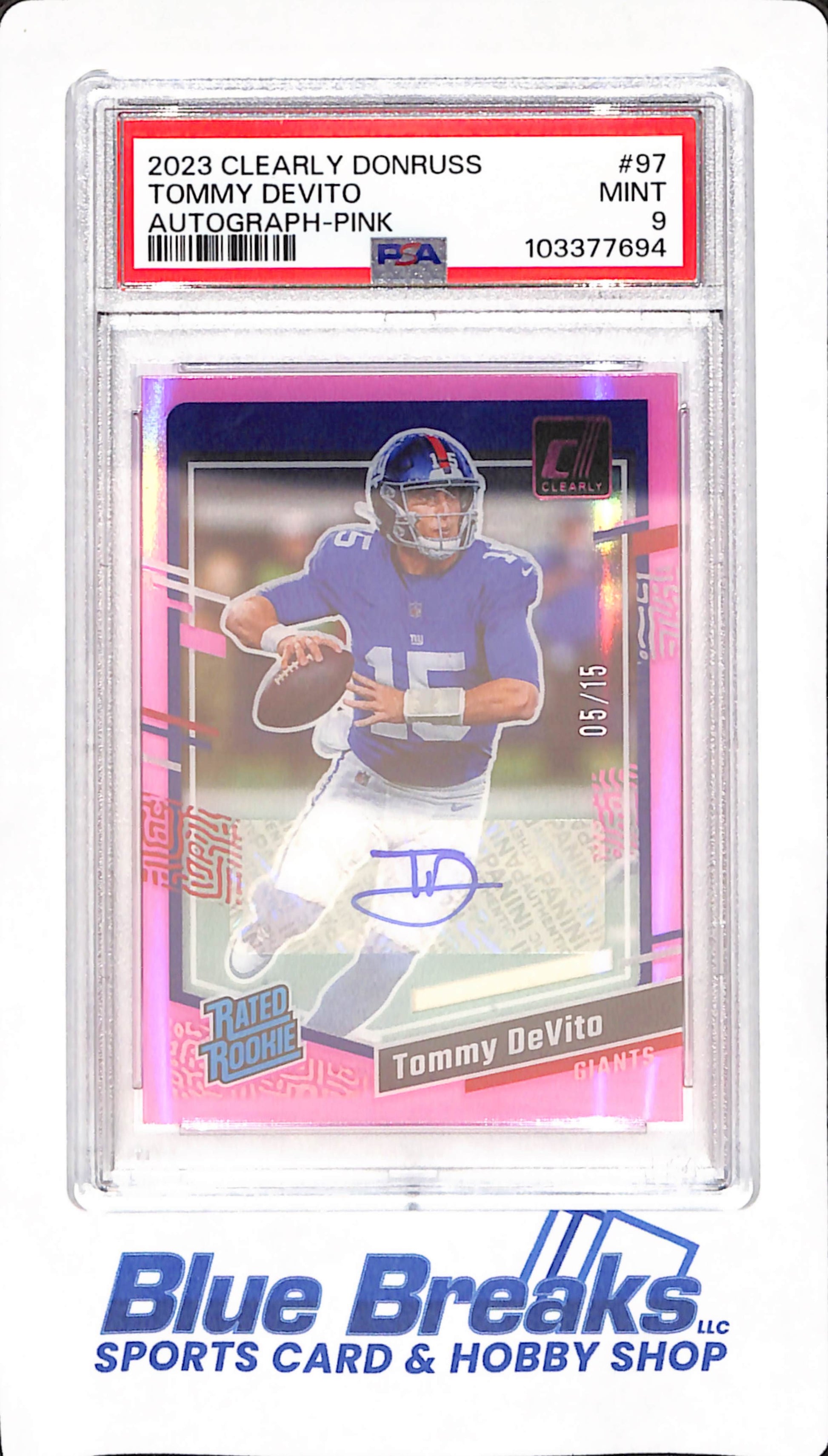 2023 Clearly Donruss - Tommy DeVito - Autograph - New York Giants - Football - Pink - 05/15 - PSA MINT 9 - #97