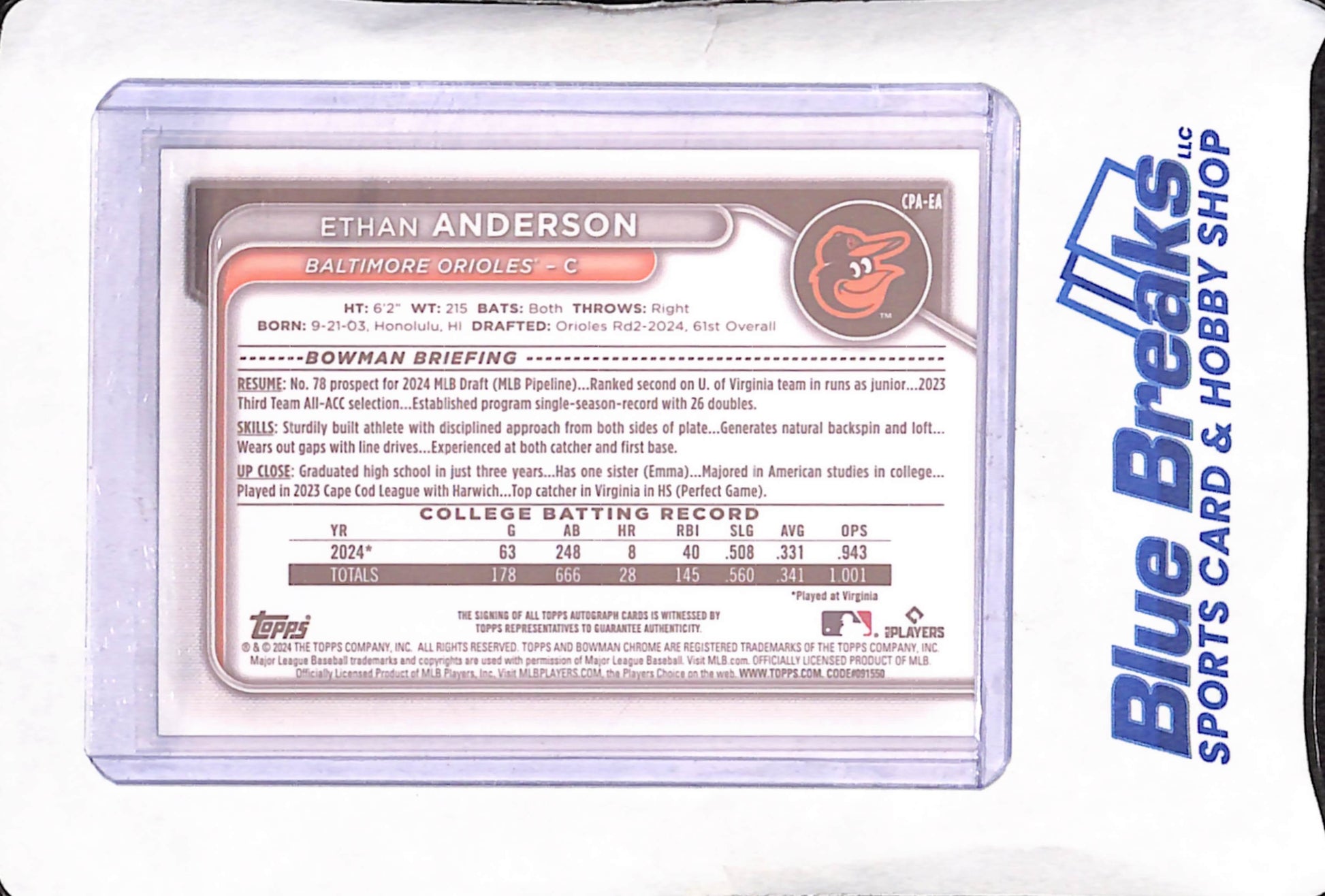 2024 Bowman Chrome - Ethan Anderson - 1st Bowman - Autograph - Baltimore Orioles - Baseball - #CPA-EA