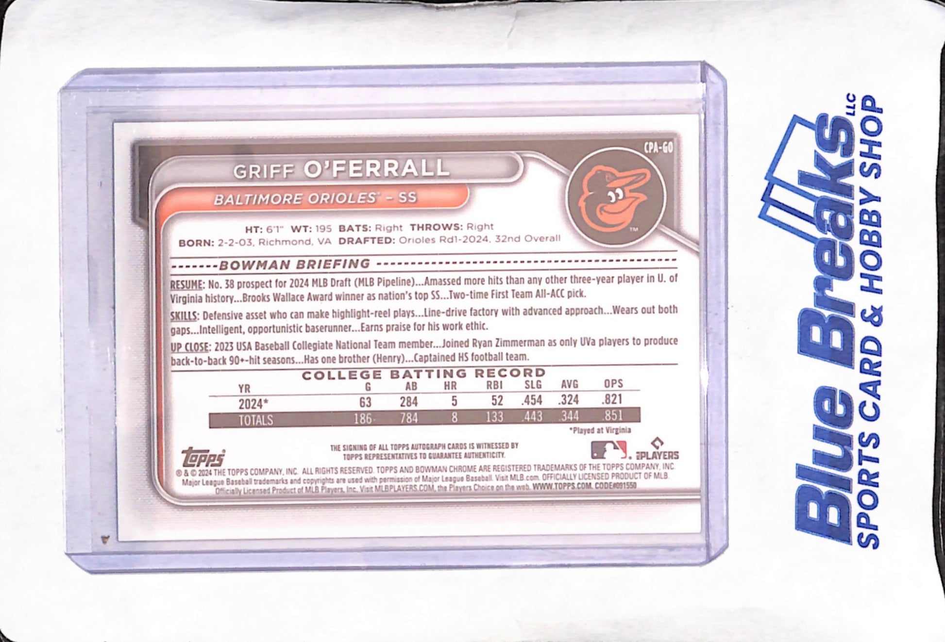 2024 Bowman Chrome - Griff O'Ferrall - Blue Bowman 1st - Autograph - 54/150 - Baltimore Orioles - Baseball - #CPA-GO