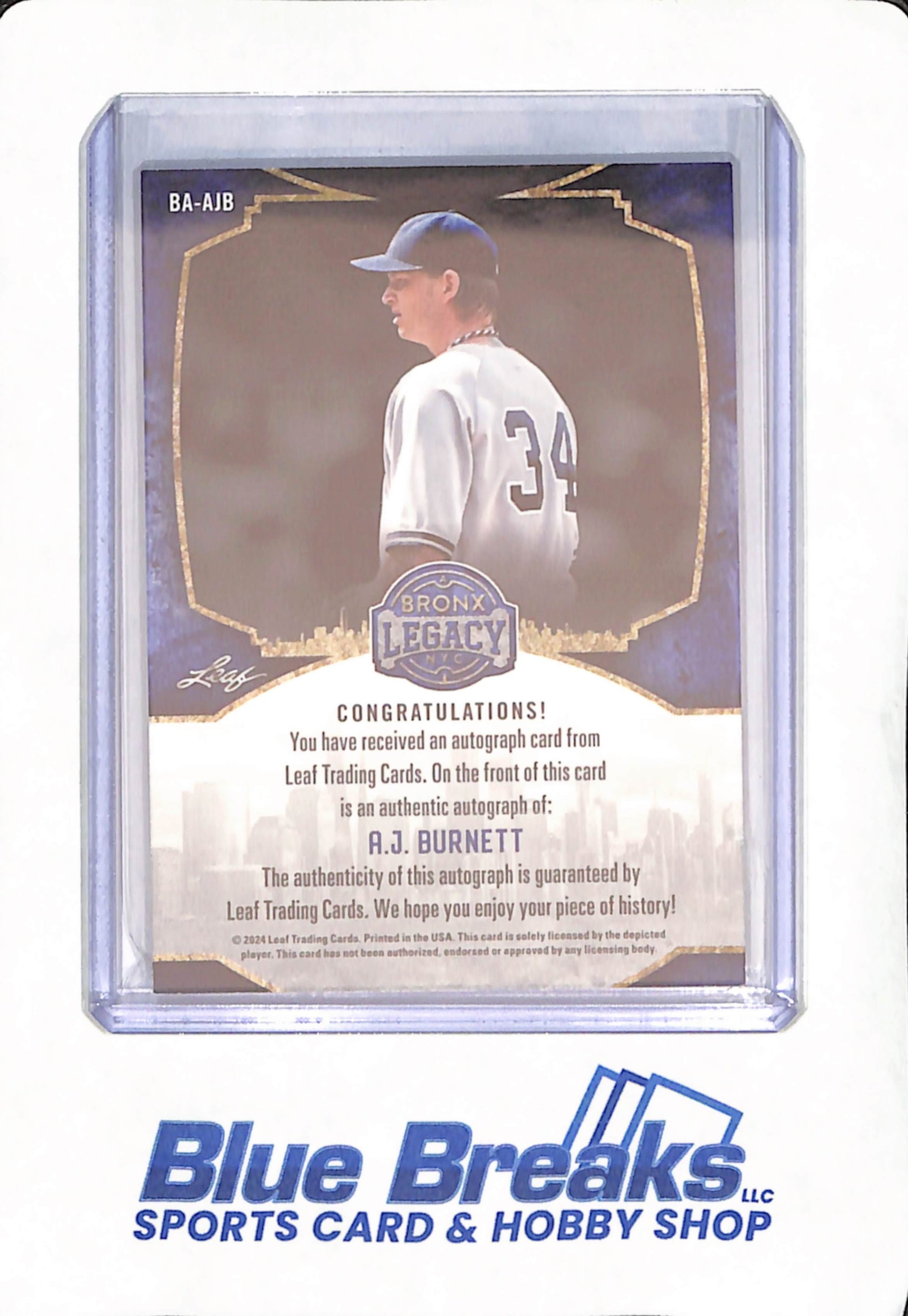 2024 Leaf Bronx Legacy - A.J. Burnett - Autograph - New York Yankees - Baseball - 2/15 - #BA-AJB