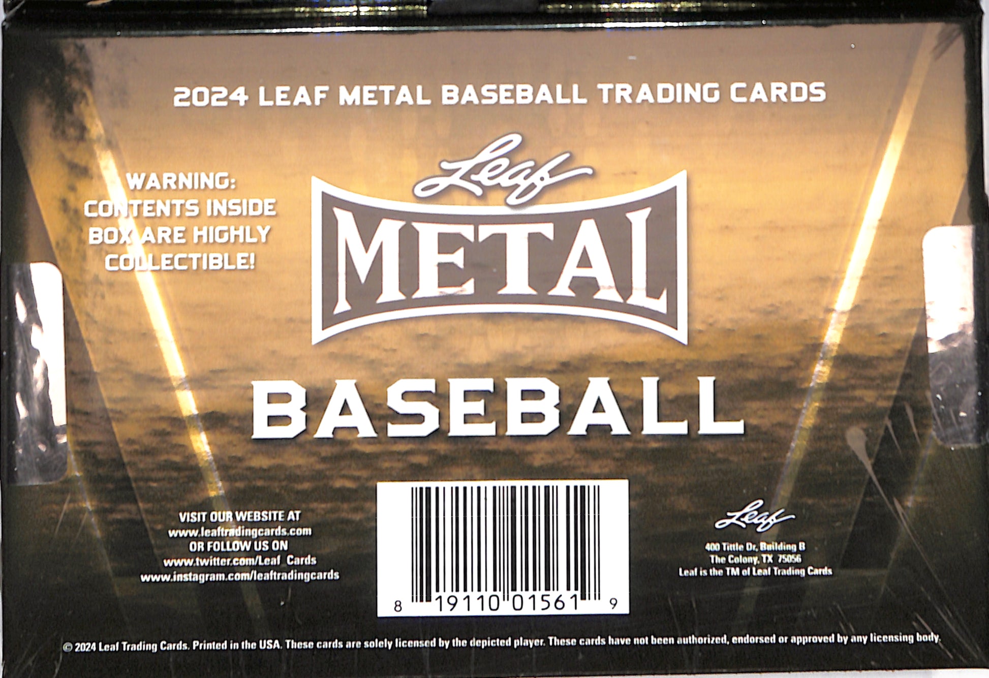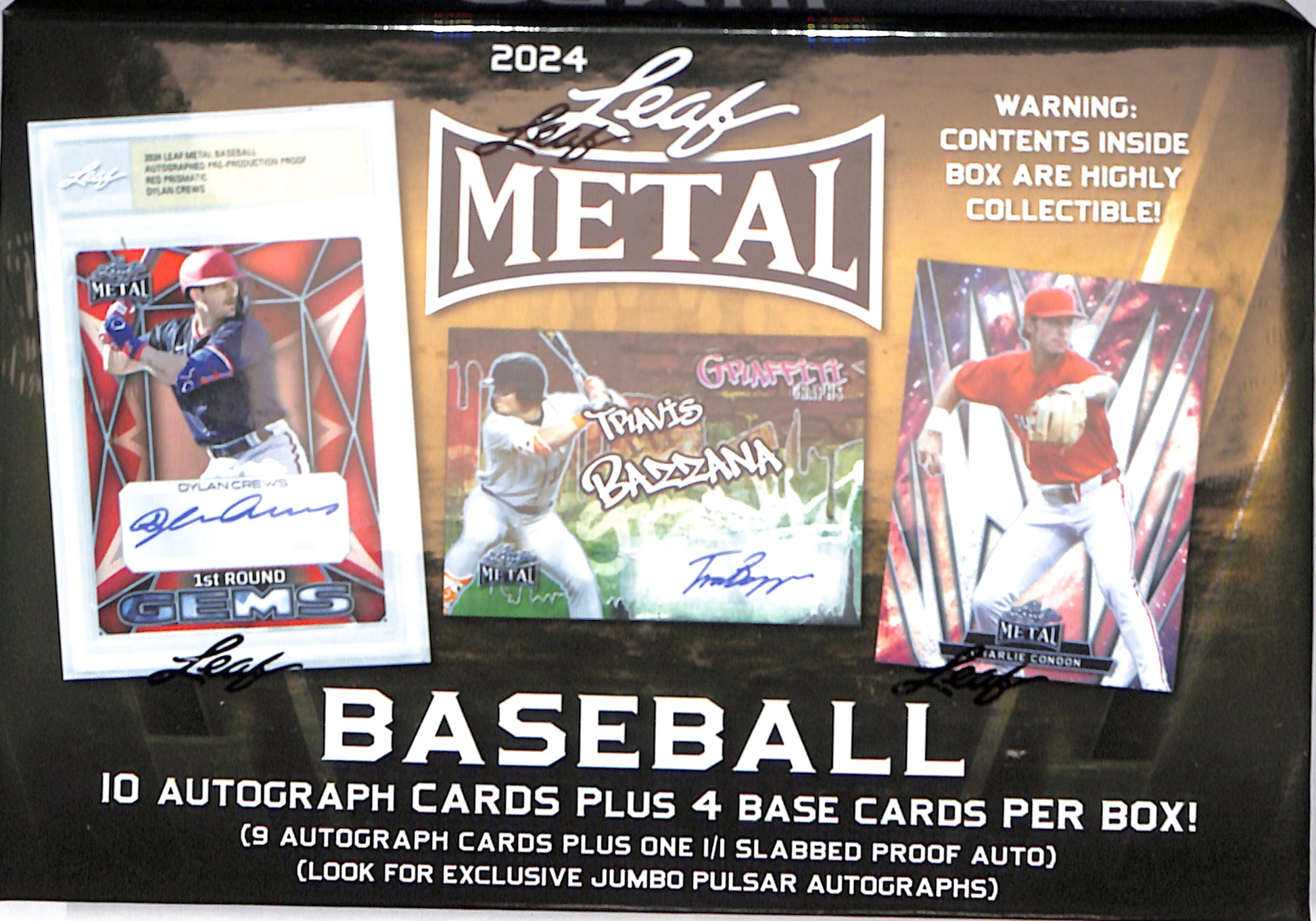 The Hobby's hottest baseball set is back and better than ever with 2024 Leaf Metal Baseball! The newest Metal release boasts an incredible checklist of top prospects, 2024 Draft Picks and All-Time Greats from the diamond.