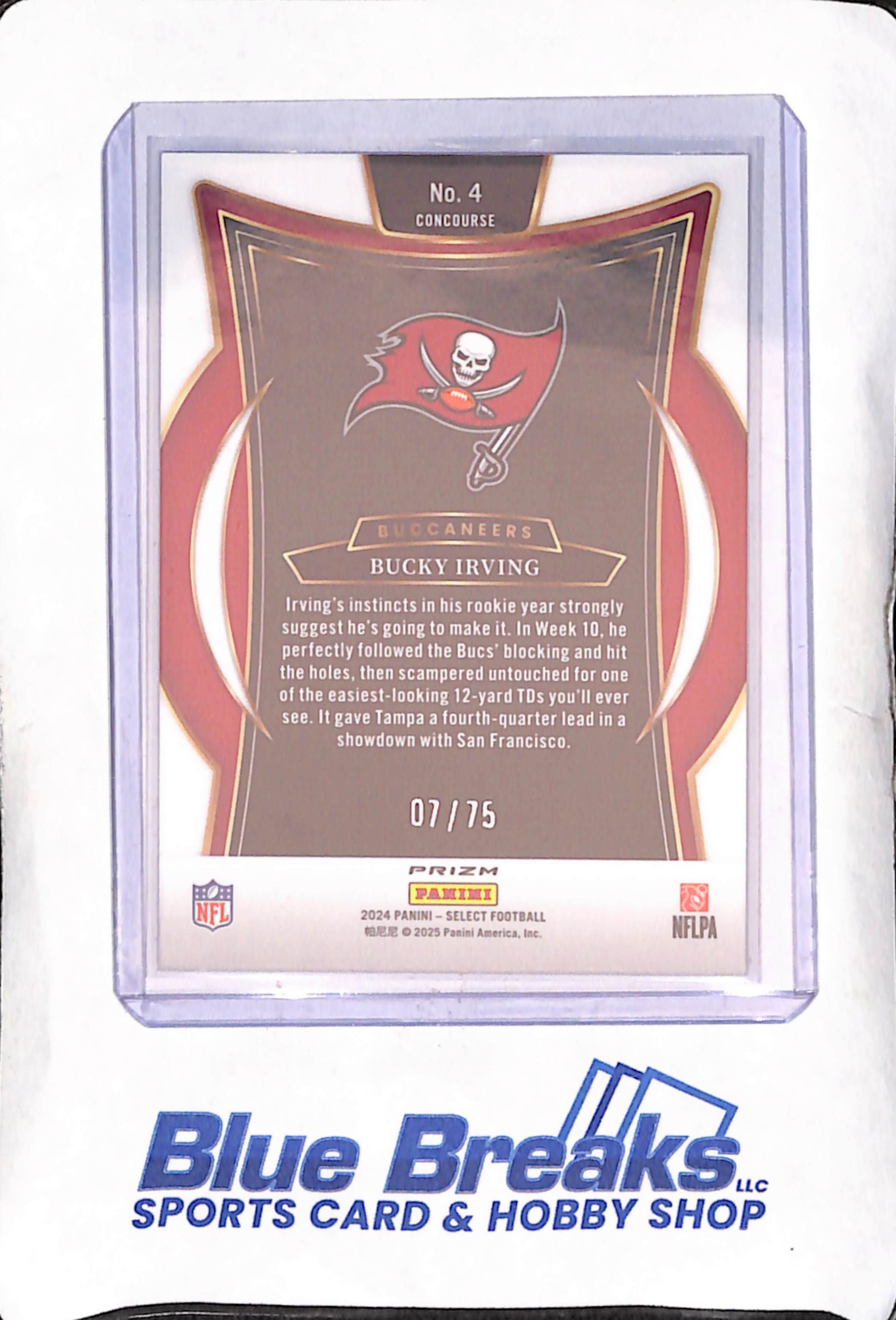 2024 Panini Select - Bucky Irving - Jersey Match Purple Refractor - RC - 7/75 - Tampa Bay Buccaneers - Football - #4