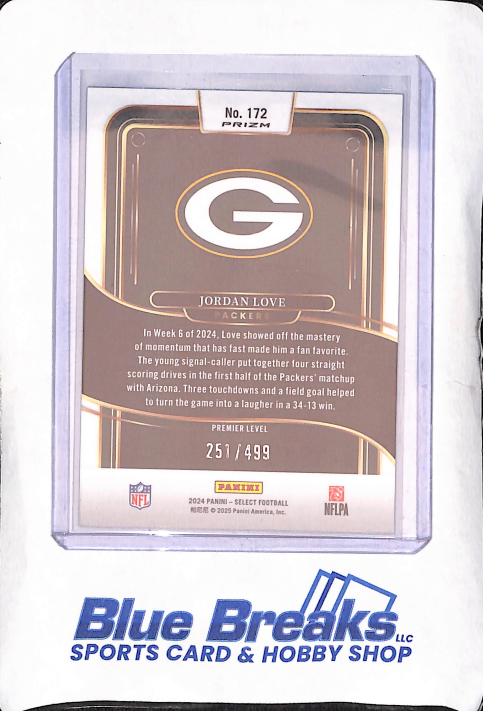 2024 Panini Select - Jordan Love - Green Shock Premier Level - 251/499 - Green Bay Packers - Football - #172
