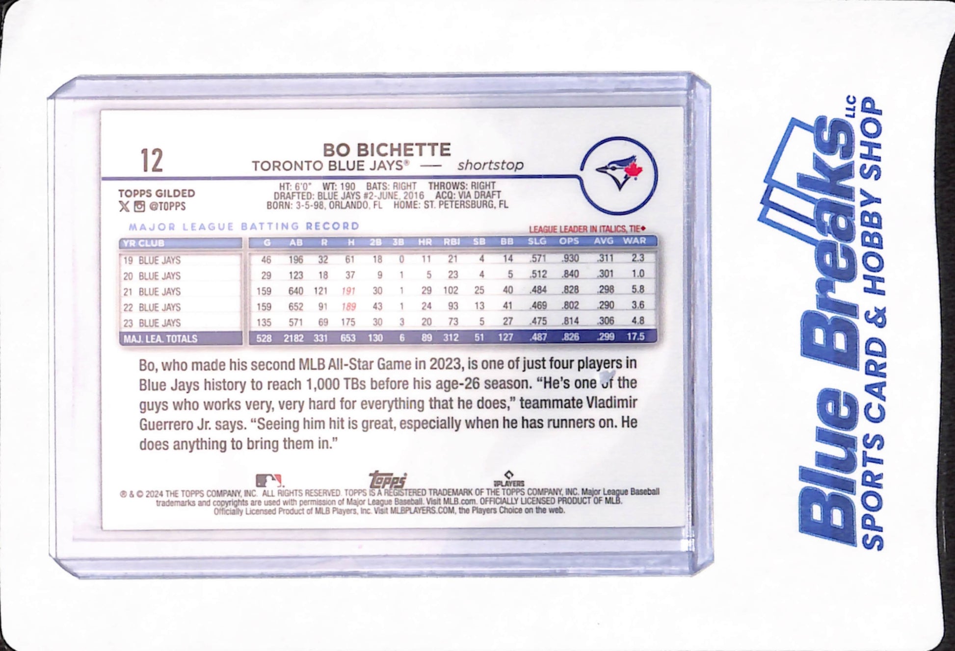 2024 Topps Gilded - Bo Bichette - Baseball - Toronto Blue Jays - 73/75