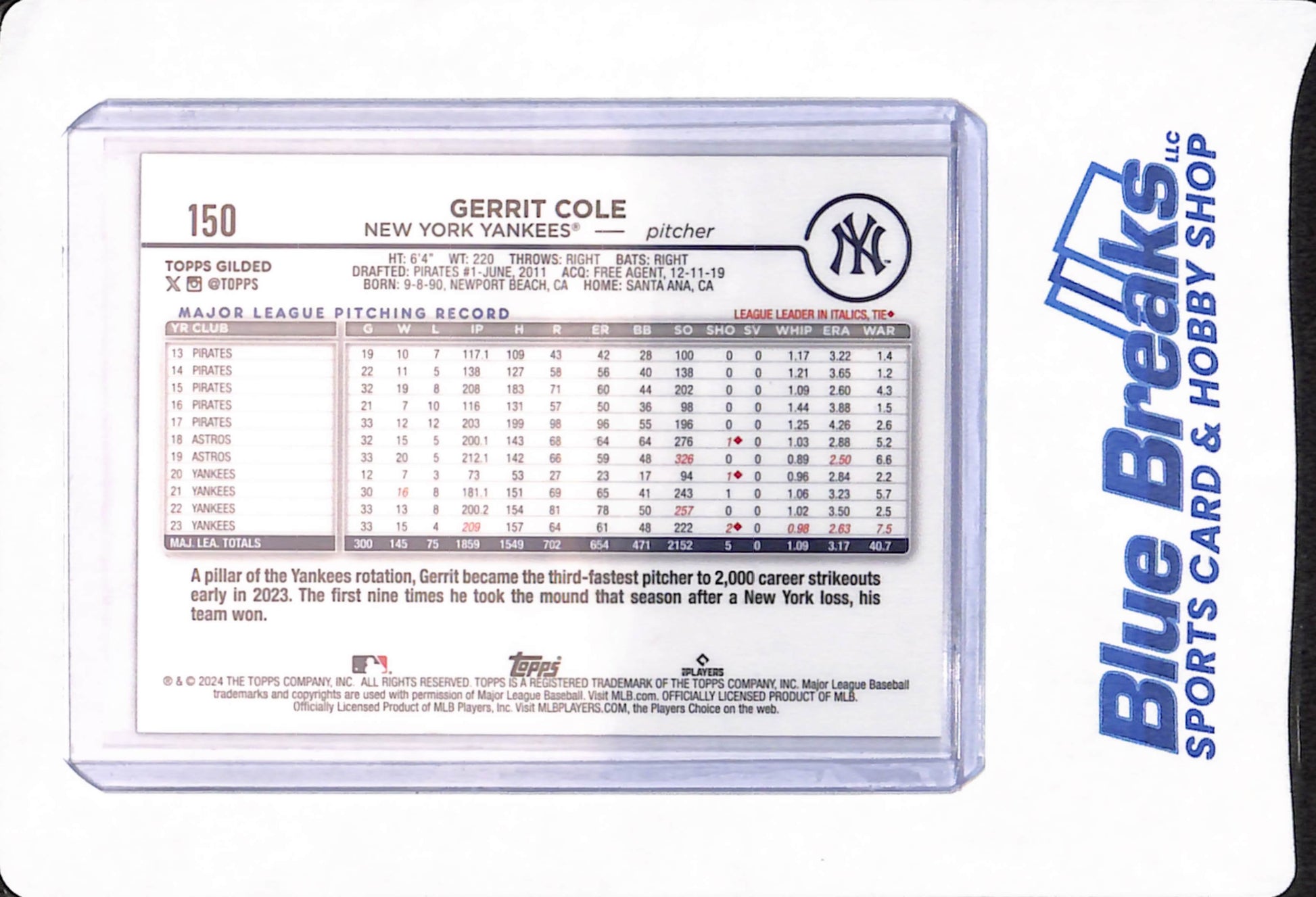 2024 Topps Gilded - Gerrit Cole - Baseball - 57/57 - New York Yankees