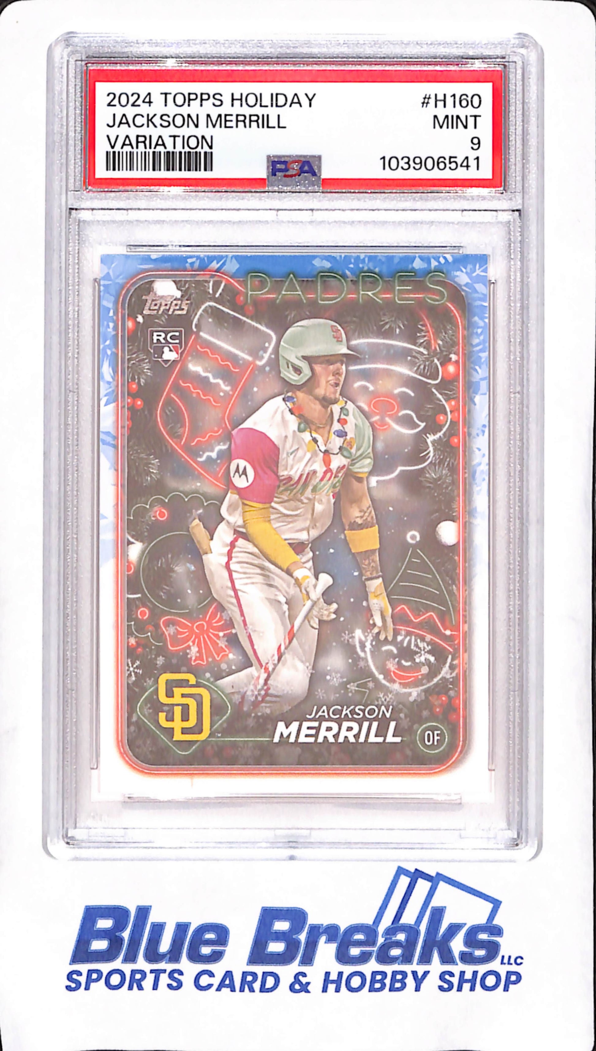 2024 Topps Holiday - Jackson Merrill - Variation - RC - PSA Mint 9 - San Diego Padres - Baseball - #H160