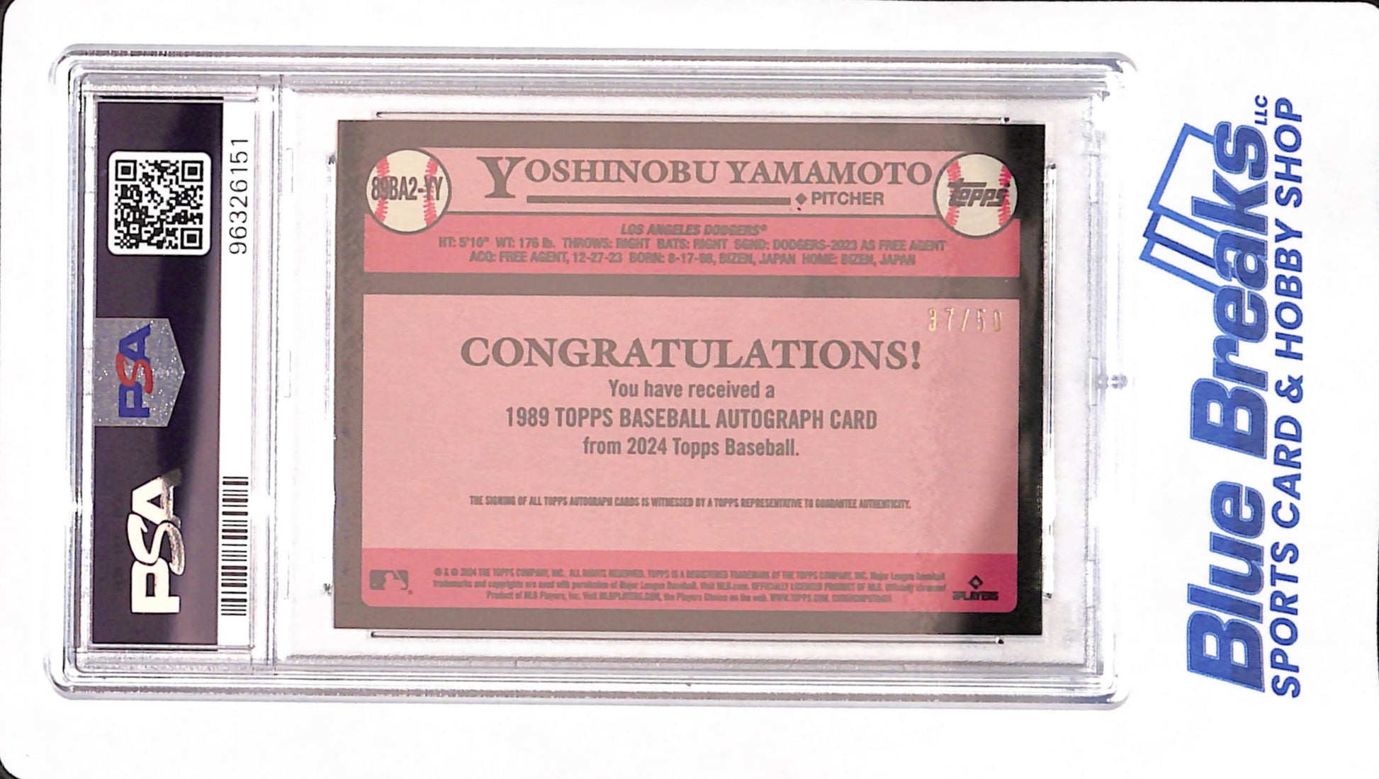 2024 Topps - Yoshinobu Yamamoto - Baseball - Los Angeles Dodgers - # 89BA2YY - 1989 Autograph Gold - 37/50 - PSA 9