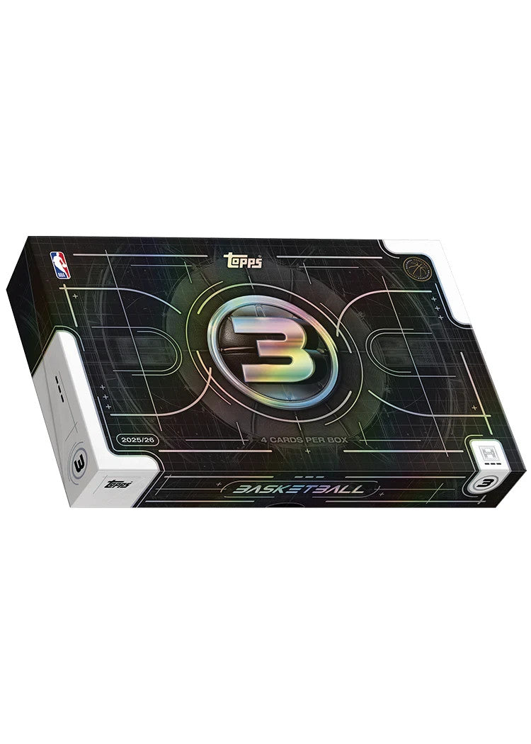 Topps Three Basketball returns for 2025–26 with an ultra-premium, tightly curated collecting experience built around the power of three. Each box delivers a high-impact lineup of three autographs or autographs relics, plus an insert or base card featuring the game’s most electric rookies, superstar veterans, and all-time legends. Chase all-new autograph sets including Rim Reapers, Quest for Glory, and City Drip Signatures, showcasing top talent with dynamic, contemporary designs. Discover striking new insert sets such as 3 & D, Monsters of the Deep, and The Paint, each bringing a distinct visual identity to the product. The hunt intensifies with Topps Three’s most coveted hits, including Three Patch Autographs, Relic Autographs Prime, and Triple Relic Autographs. With every card curated for impact, Topps Three Basketball delivers premium collecting at its most powerful.