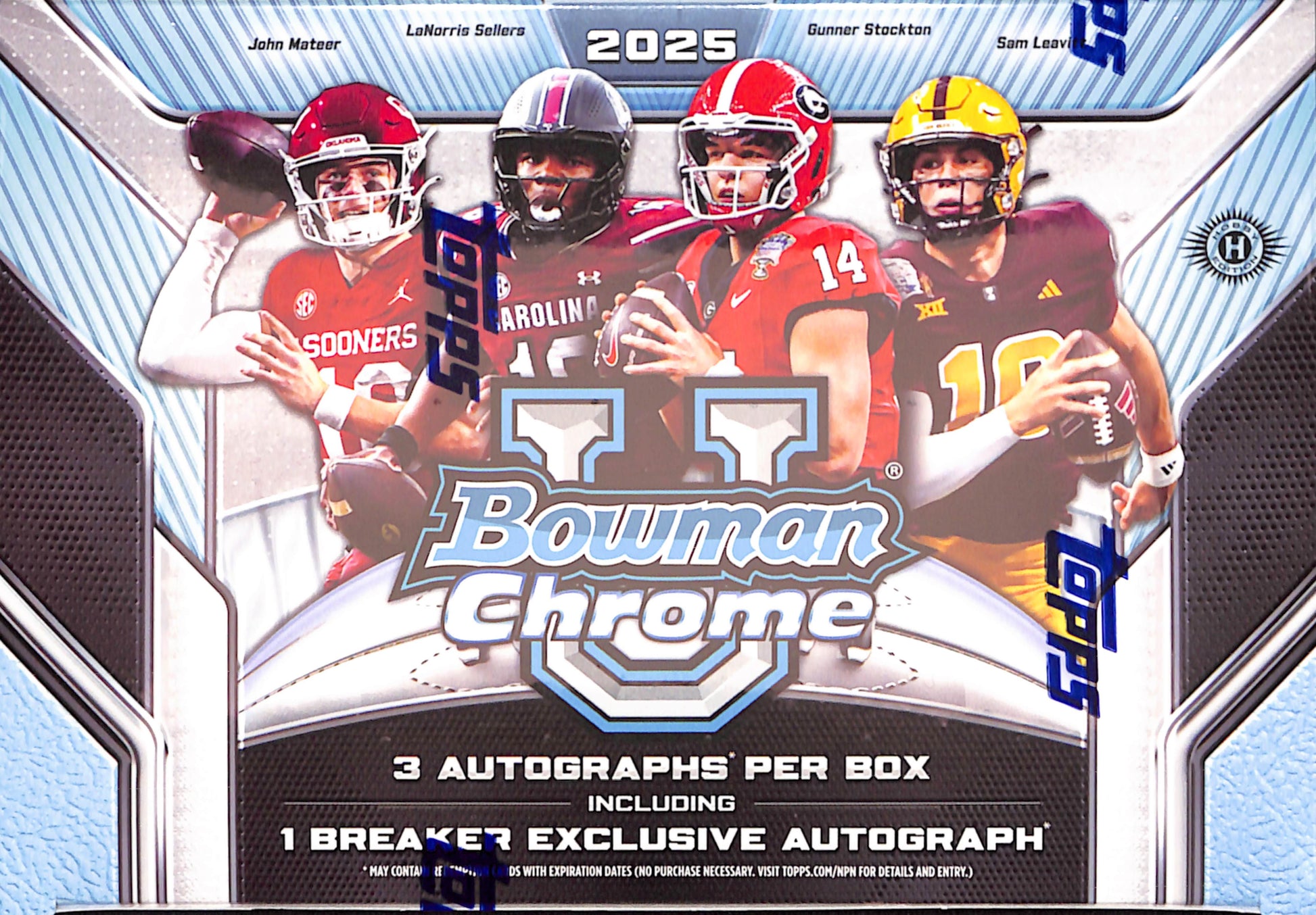 Get ready to storm the field, Bowman University Chrome Football is back for the 2025 College Football season! Look for the top prospects across the nation, with their very first Bowman Cards!