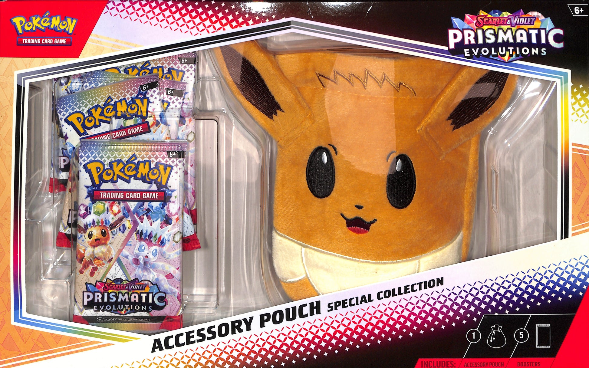 The Pokémon TCG: Scarlet & Violet—Prismatic Evolutions Accessory Pouch Special Collection includes: